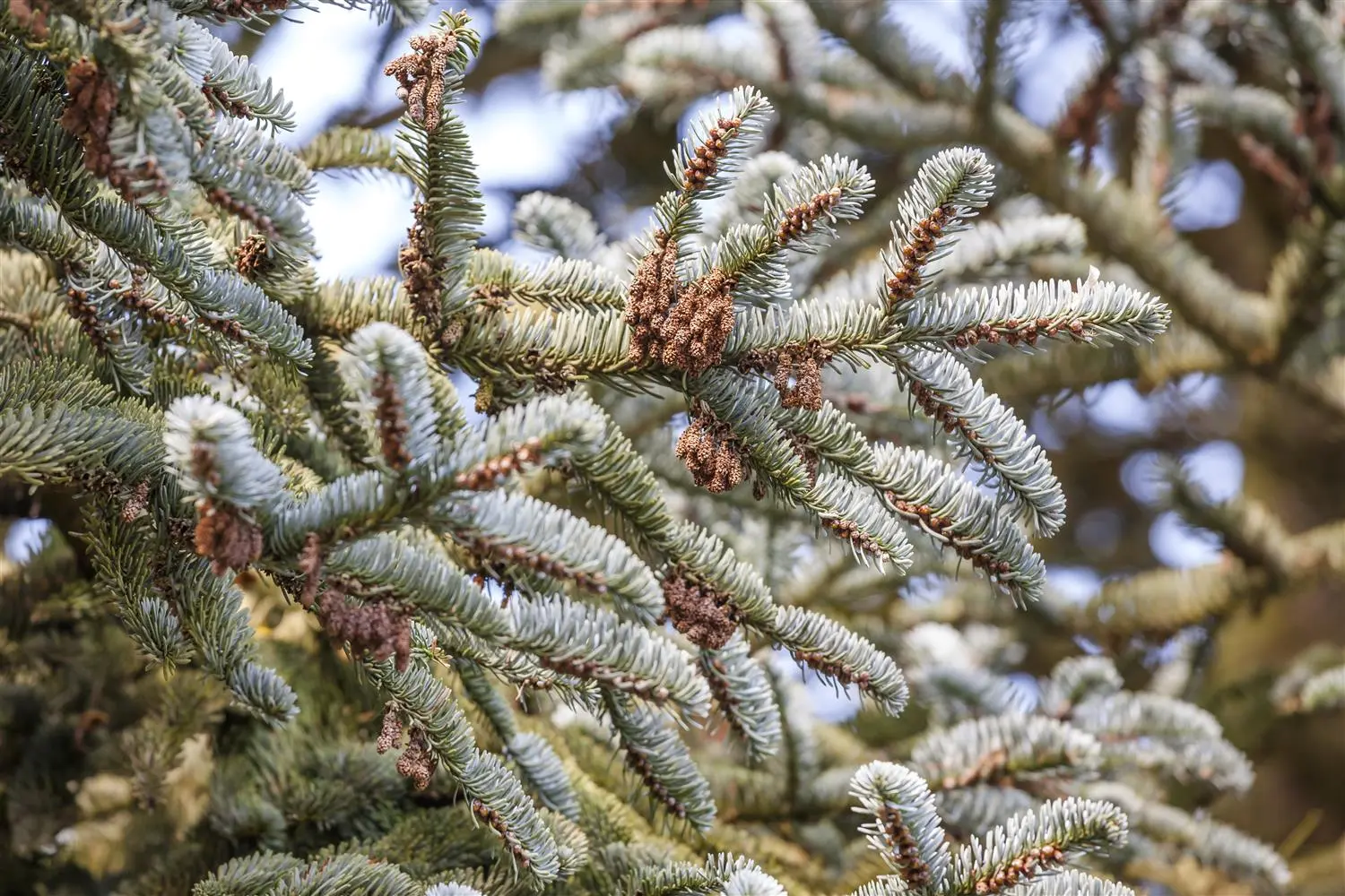 The dark brown, cylindrical cones of Abies koreana are particularly decorative. These appear from October and the young cones have a dark blue colour.
