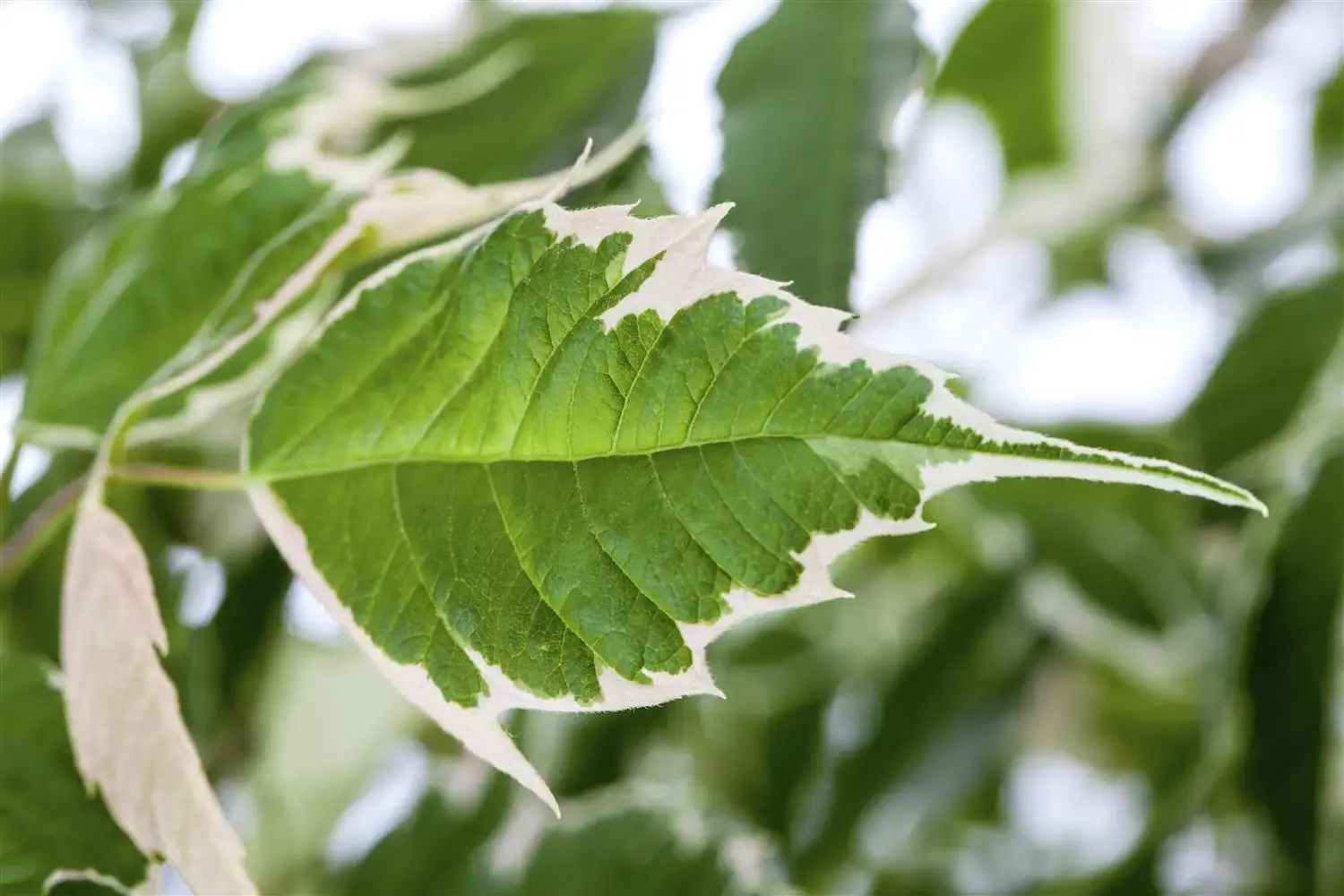 The Box elder 'Flamingo' (Acer negundo) is a bushy, broad, large shrub that produces creamy white flowers arranged in clusters. They appear in April. The Box elder 'Flamingo' also has pinnate, green leaves with a white-pink edge. The pink-coloured shoots are also an interesting sight. In a sunny location, it usually reaches a height of around 7 metres and is around 6 metres wide. The Box elder 'Flamingo' makes no particular demands on the soil.