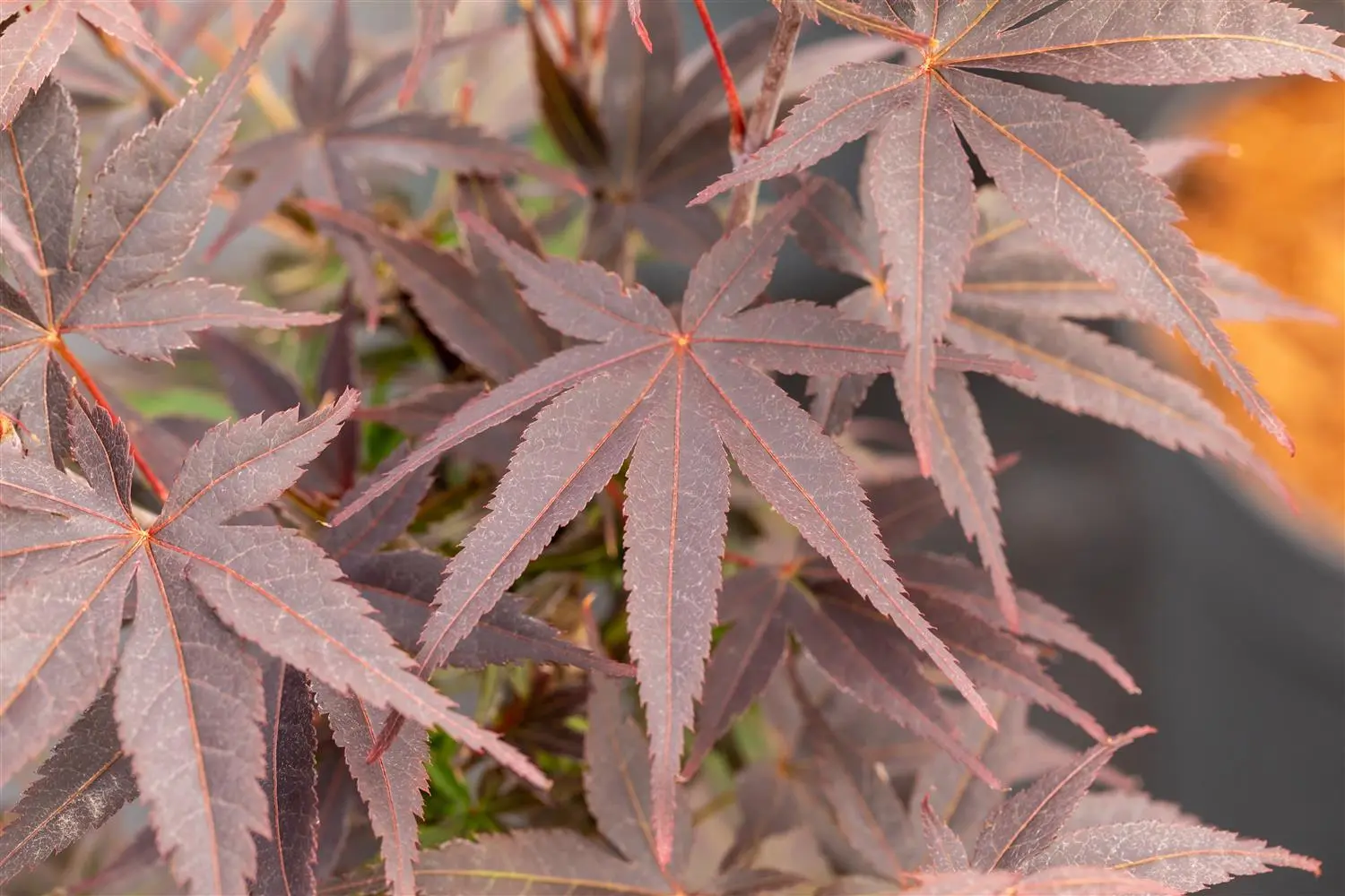 The Japanese maple 'Pixie' (Acer palmatum) is a multi-stemmed, umbrella-shaped, picturesque, compact large shrub that produces purple-red flowers arranged in clusters. They appear in May. These produce red-brown winged fruits. The Japanese maple 'Pixie' also has cut, medium green leaves with black and red markings. In a sunny to semi-shady, wind-protected location with well-drained, humus-rich soil, it usually reaches a height of around 2 metres and grows to around 2 metres wide.