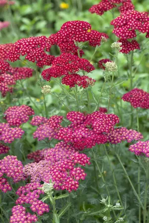 Achillea millefolium 'Red Velvet' forms red flowers arranged in umbels from June. These exude a pleasant fragrance. With proper care, re-flowering in September.