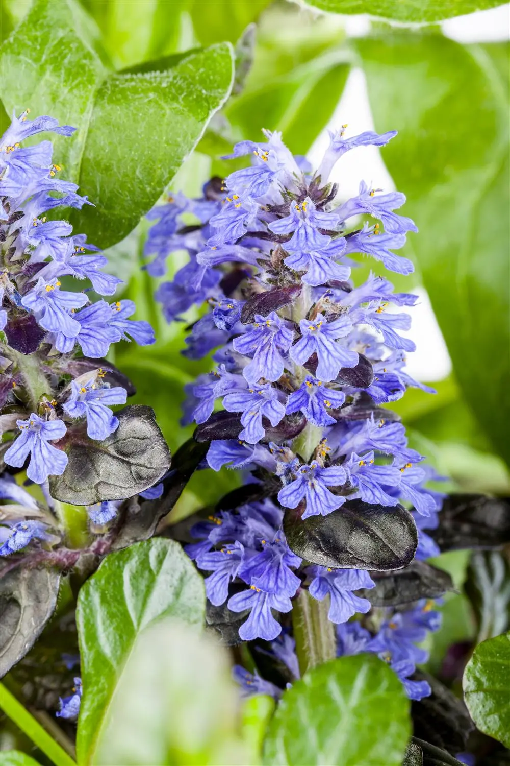 The Bugle (Ajuga reptans) is a creeping, winter-green perennial that forms blue, lip-shaped flowers arranged in whorls from April to May. Its shiny, egg-shaped, whole-margined leaves are dark green. In a sunny to semi-shady location with well-drained, humus-rich, nutrient-rich soil, it usually grows to a height of approx. 15 cm and is approx. 25 cm wide. The Bugle is well tolerant of frost.