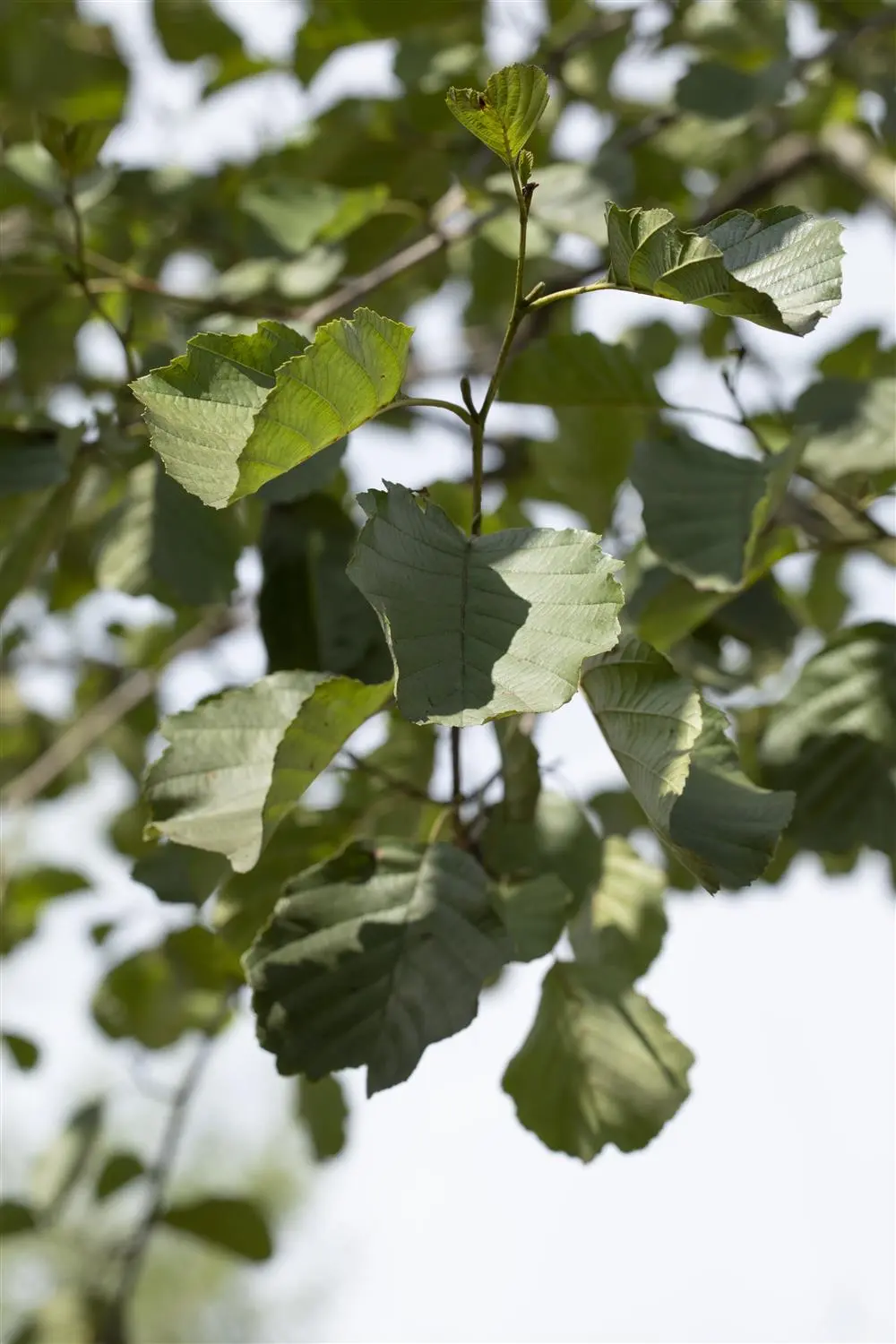 The Common alder (Alnus glutinosa) is a pyramidal, picturesque large tree that produces light brown flowers arranged in catkins. They appear from March to April. The Common alder also has roundish, dark green leaves. Its bark is dark grey and longitudinally furrowed. In a sunny to semi-shady location with moist to wet, weakly acidic soil, it usually reaches a height of approx. 25 metres and grows to a width of approx. 14 metres.