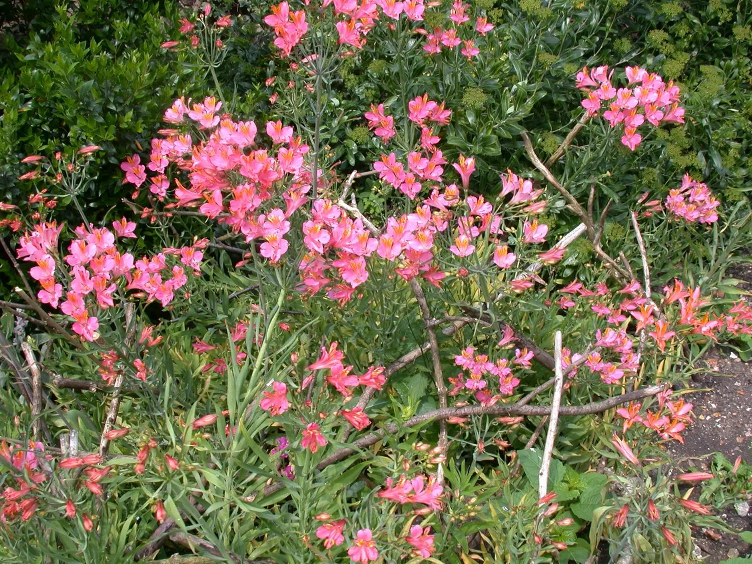 Alstroemeria forms yellow, pink, red, white, bicoloured flowers from June.