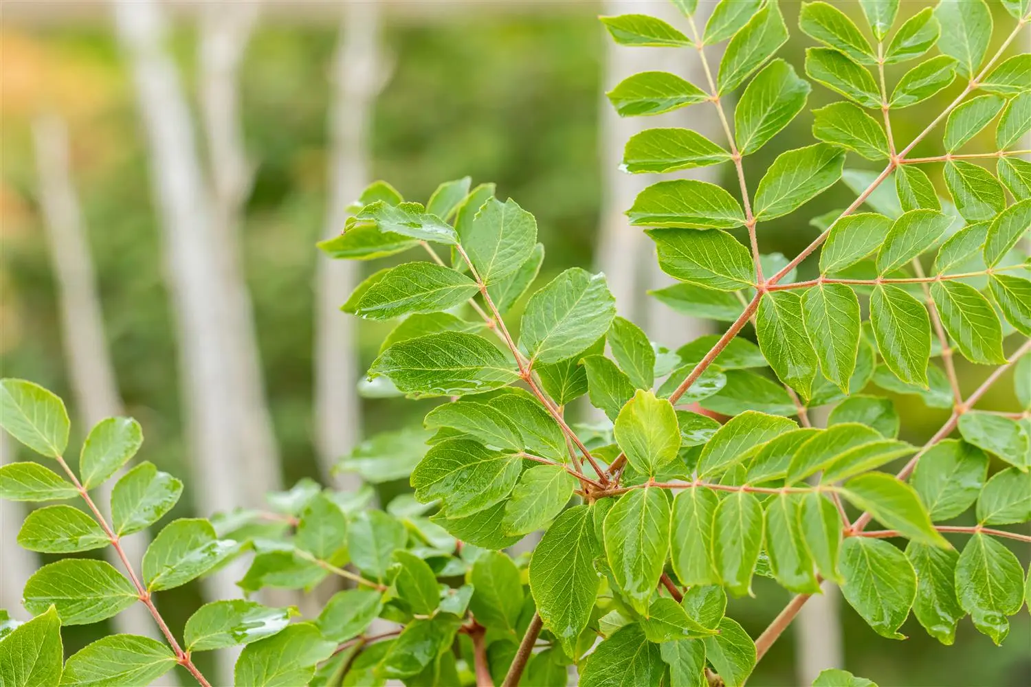 Japanese angelica tree is a bizarre and multi-stemmed large shrub with a translucent crown. It usually reaches a height of 4 - 7 m and is approx. 2 - 3 m wide. It usually grows 20 - 25 cm per year.