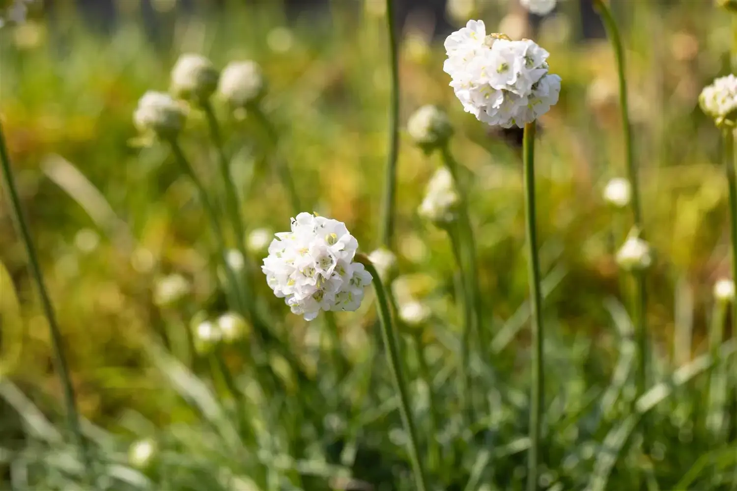 Armeria maritima 'Alba' forms ball-shaped, white flowers from May.