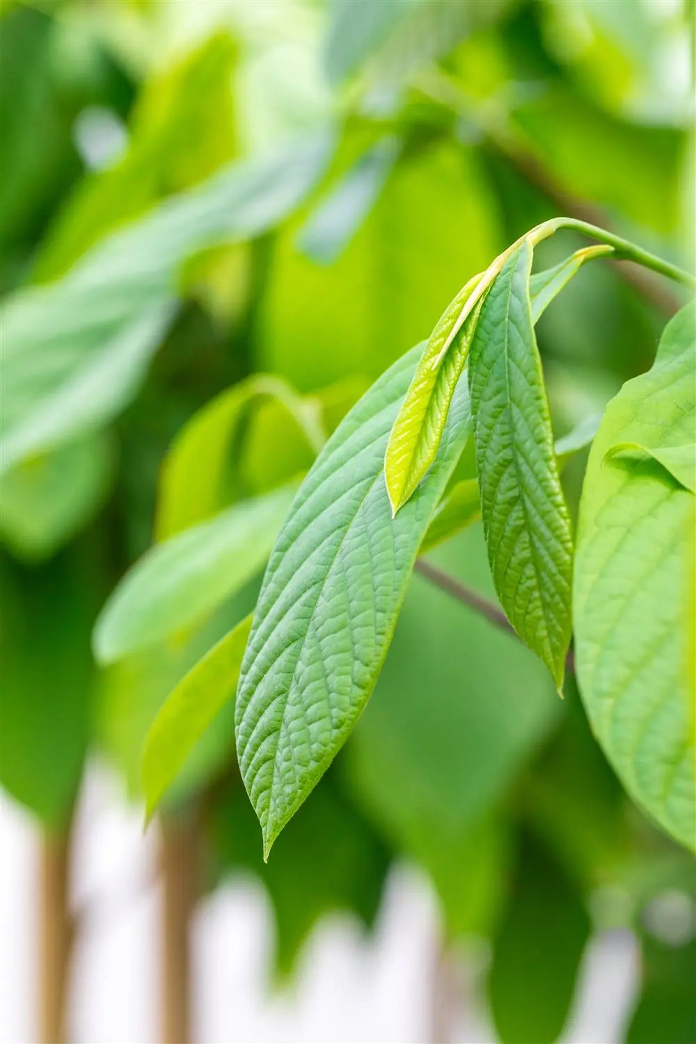 The deciduous leaves of the Pawpaw are green, lanceolate. They are about 15 - 20 cm in size. Pawpaw turns bright yellow in autumn.