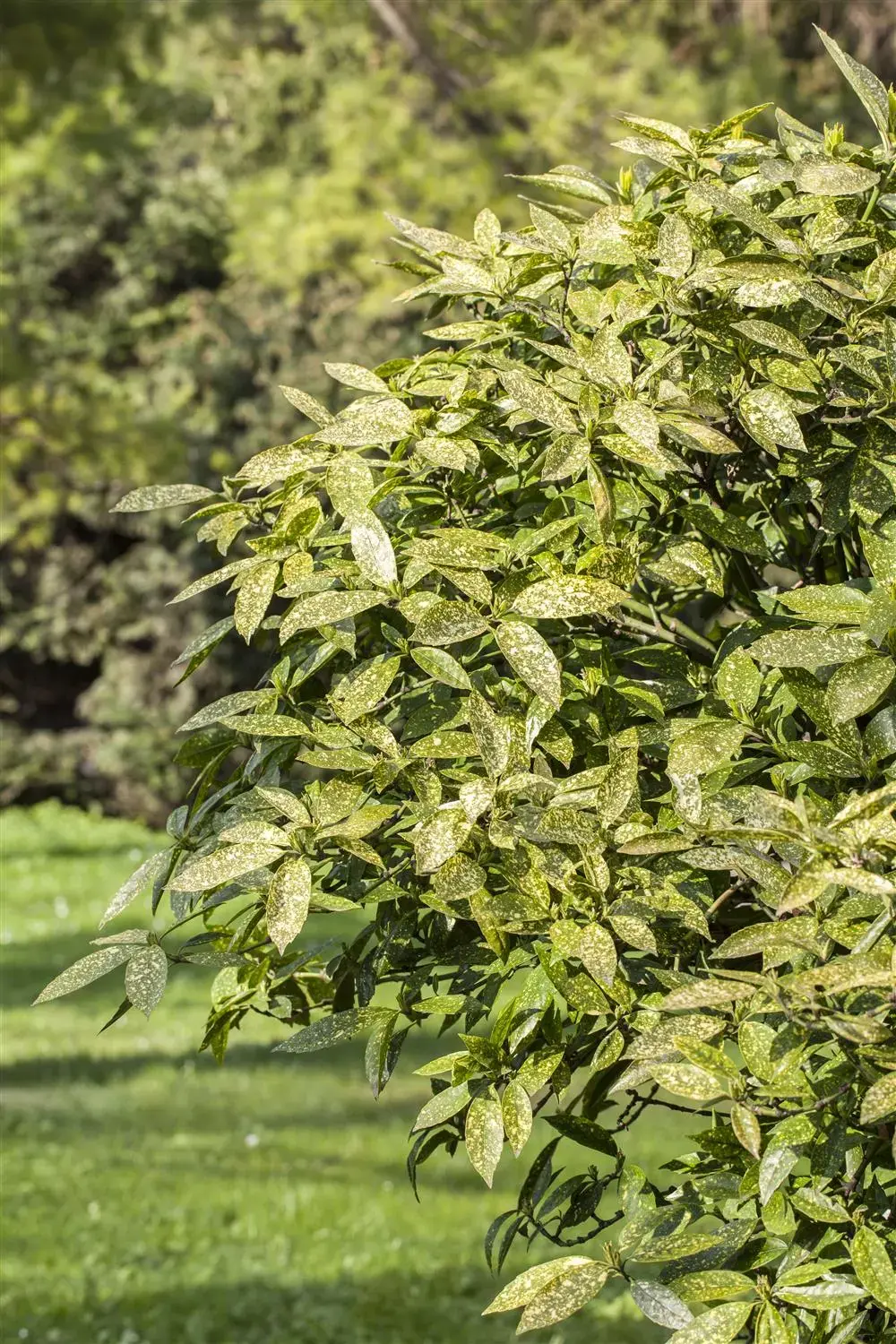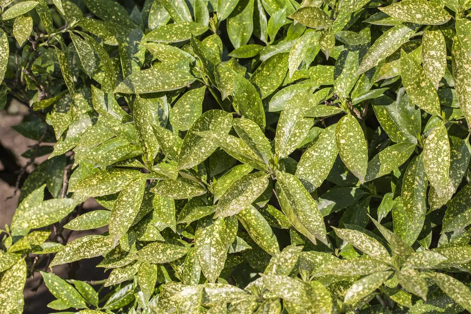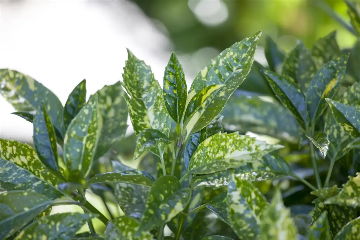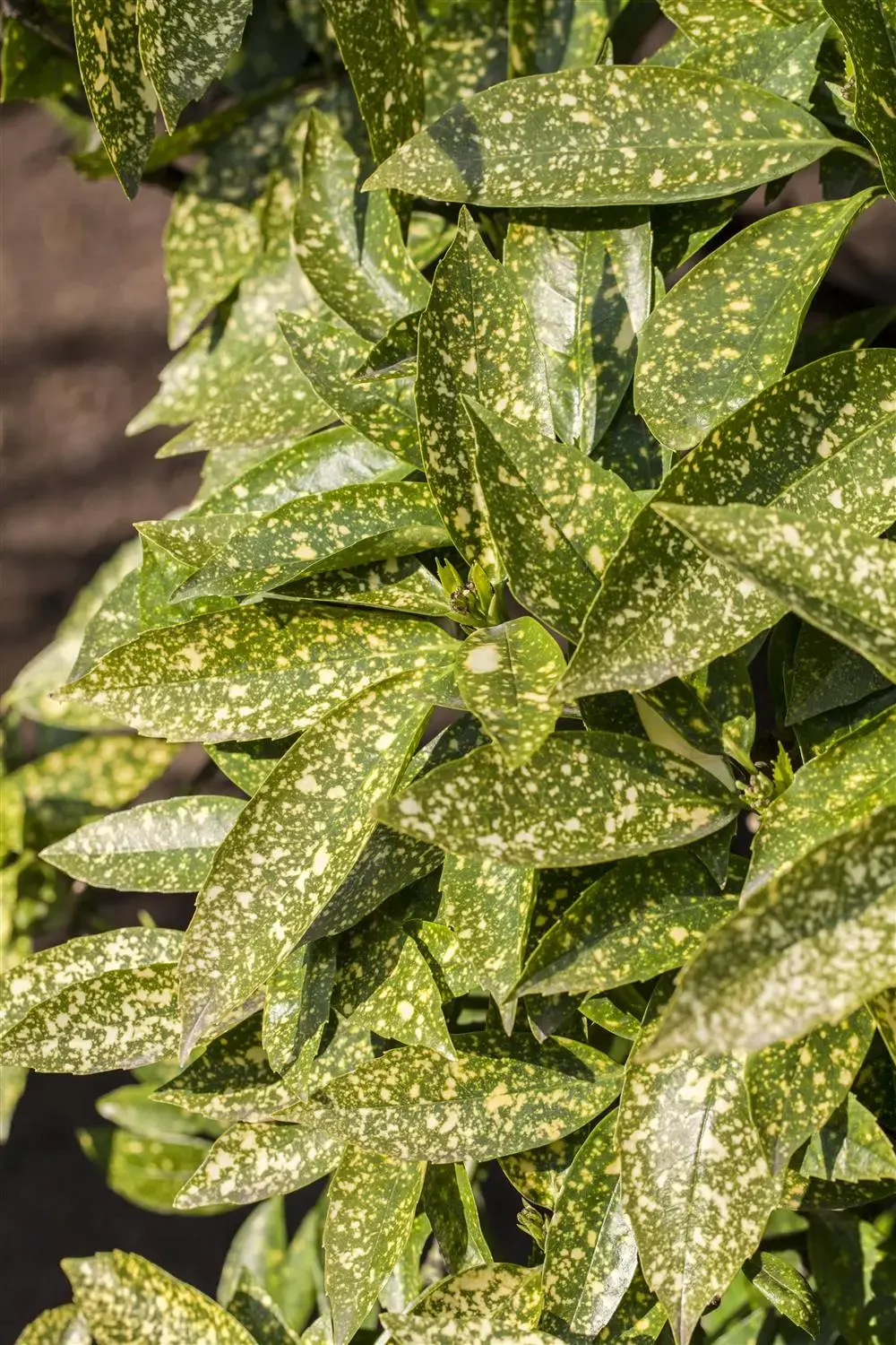 The Spotted laurel (Aucuba japonica) is an upright, broad garden plant with decorative, red fruits. It produces dark red flowers from April to May. In a semi-shady to shady, wind-protected location with well-drained, humus-rich, sandy, loamy soil, it usually reaches a height of approx. 3 m and is approx. 2.5 m wide.