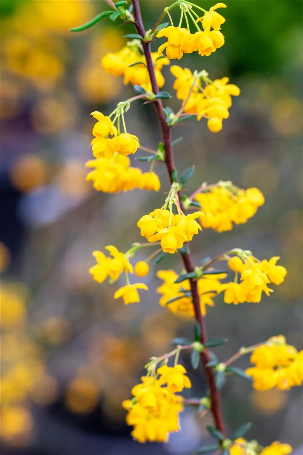 The Golden barberry (Berberis stenophylla) is a sprawling, loose shrub that produces golden-yellow flowers. They appear from May to June. These produce black-blue, round fruits. The Golden barberry also has lanceolate, dark green leaves. Its bark is brown-yellow. In a sunny to semi-shady location, it usually reaches a height of approx. 2.5 metres and grows to a width of approx. 2.5 metres. The Golden barberry makes no special demands on the soil.