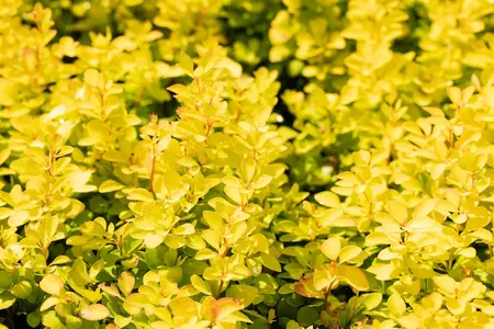 The deciduous leaves of the Japanese barberry 'Maria'(s) are golden yellow, roundish. They are about 3 - 4 cm in size.