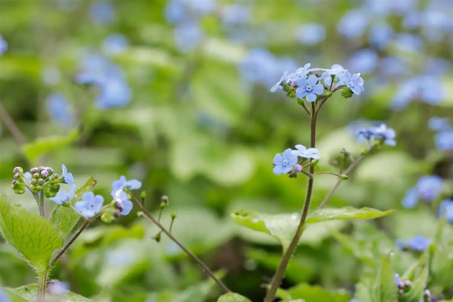 Brunnera macrophylla 'Alexander´s Great' forms wheel-shaped, blue flowers arranged in panicles from May.