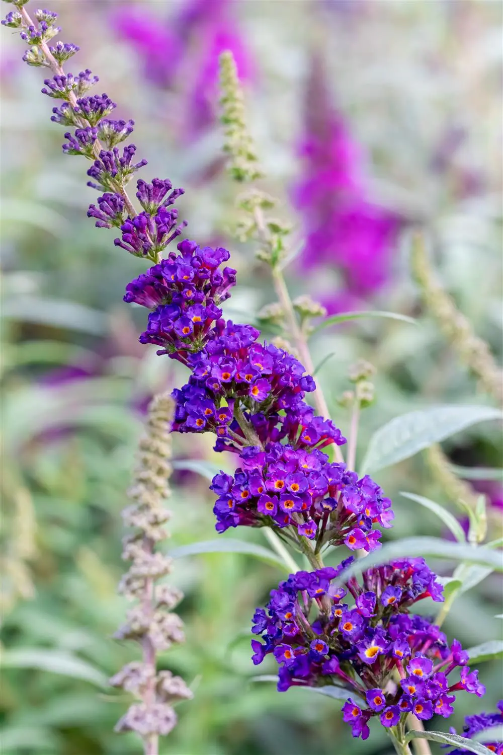 The magenta-coloured flowers of the Butterfly bush 'Timmi' appear in panicles from July to September. They are strongly scented.