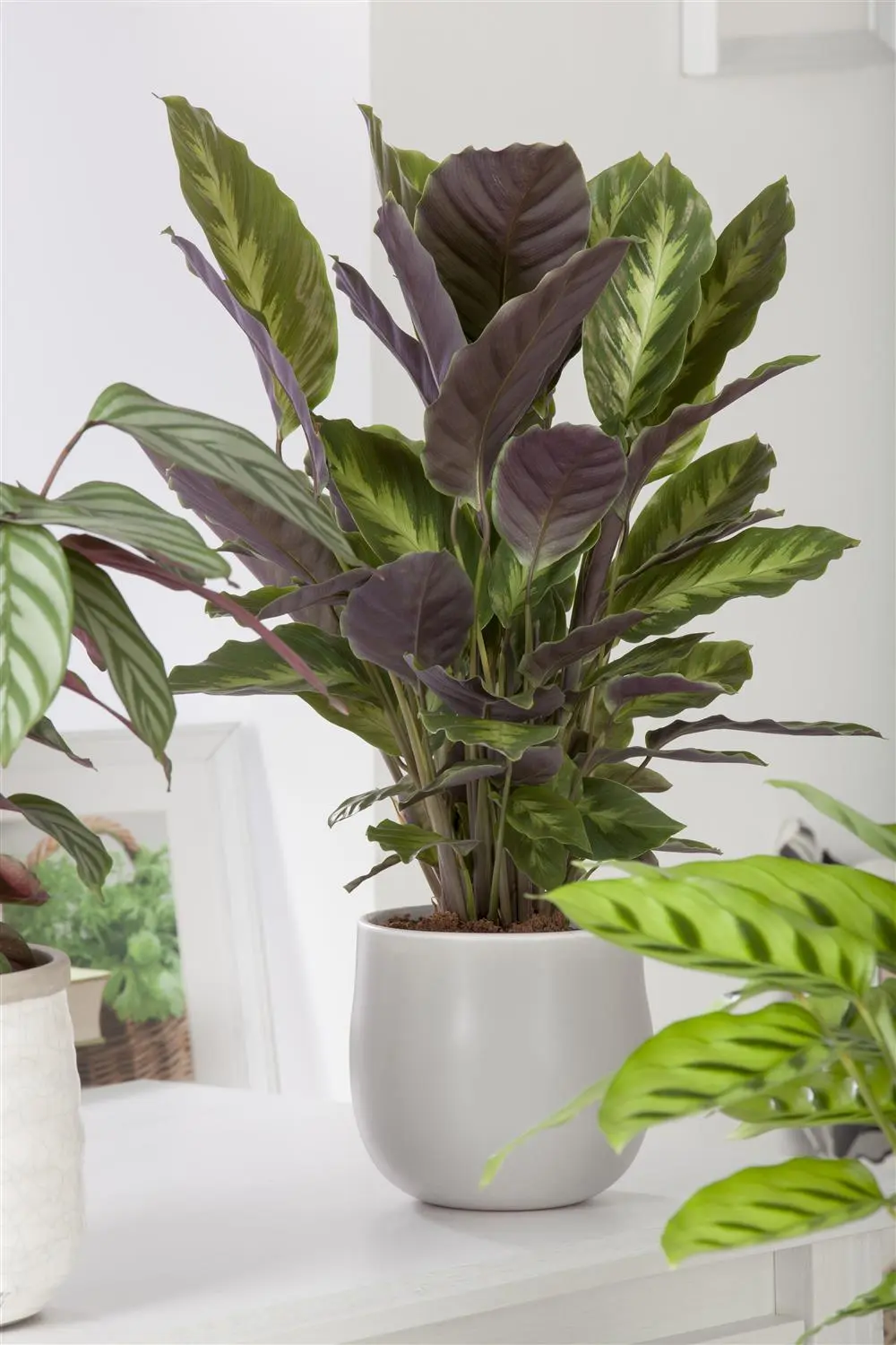 The Calathea (Calathea) is a plant with decorative, multi-coloured leaves. They are egg-shaped and wavy. This bushy and upright plant thrives best in a semi-shady location.