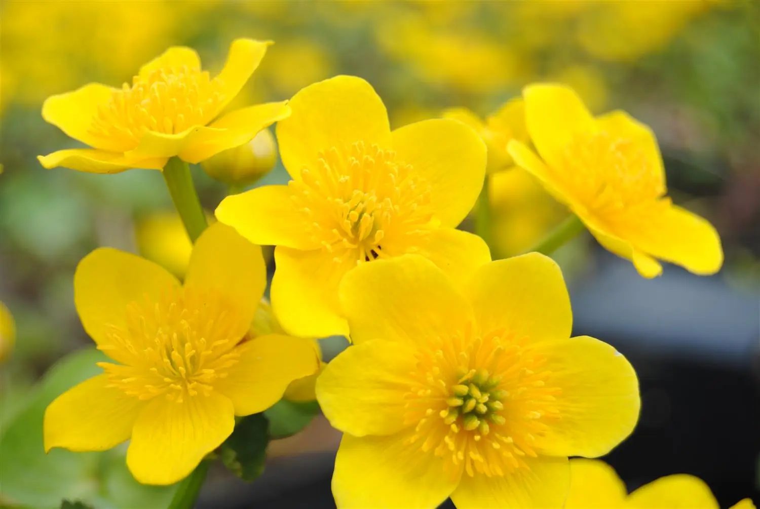 The golden-yellow, cup-shaped flowers appear from March to May. They are pleasantly scented.