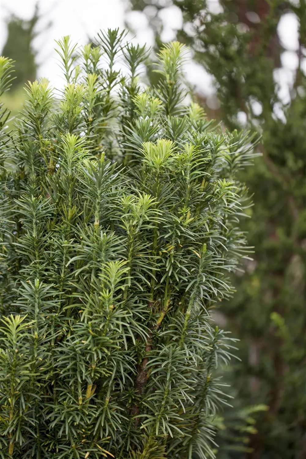 Japanese Plum Yew 'Fastigiata' is a columnar growing shrub. It usually reaches a height of 2 - 3 m and is approx. 1 - 1.5 m wide. Slow growing. It usually grows 8 - 10 cm per year.
