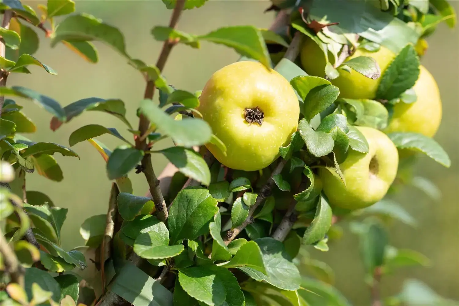 The Japanese quince 'Sargentii' (Chaenomeles japonica) is a sprawling small shrub with decorative, yellow, orange-coloured, pear-shaped fruits. It produces red flowers from May to June. The Japanese quince 'Sargentii' also has egg-shaped, medium-green leaves. In a sunny to semi-shady location, it usually reaches a height of approx. 1.5 metres and grows to a width of approx. 1.2 metres. The Japanese quince 'Sargentii' makes no special demands on the soil.