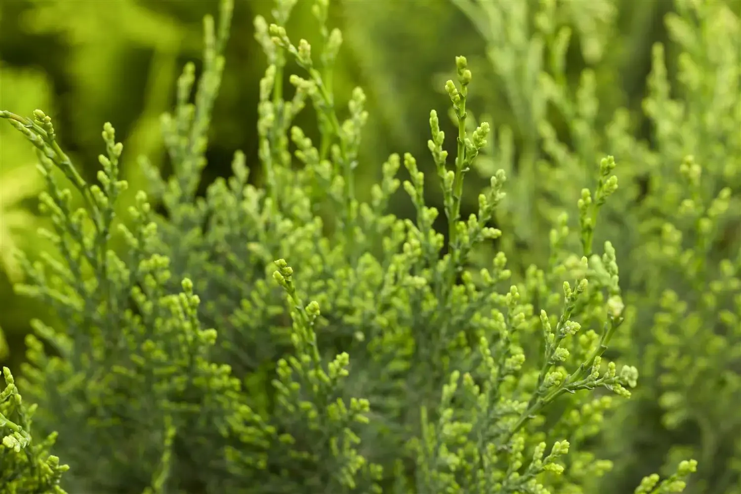 The Lawson cypress 'White Spot' (Chamaecyparis lawsoniana) is a large shrub that grows in a columnar shape and usually reaches a height of around 5 metres and a width of around 2.5 metres. Its scale-like leaves are yellow-green in colour. This shrub is well tolerant of frost. It prefers well-drained, nutrient-rich soil in a sunny to semi-shady, wind-protected location.