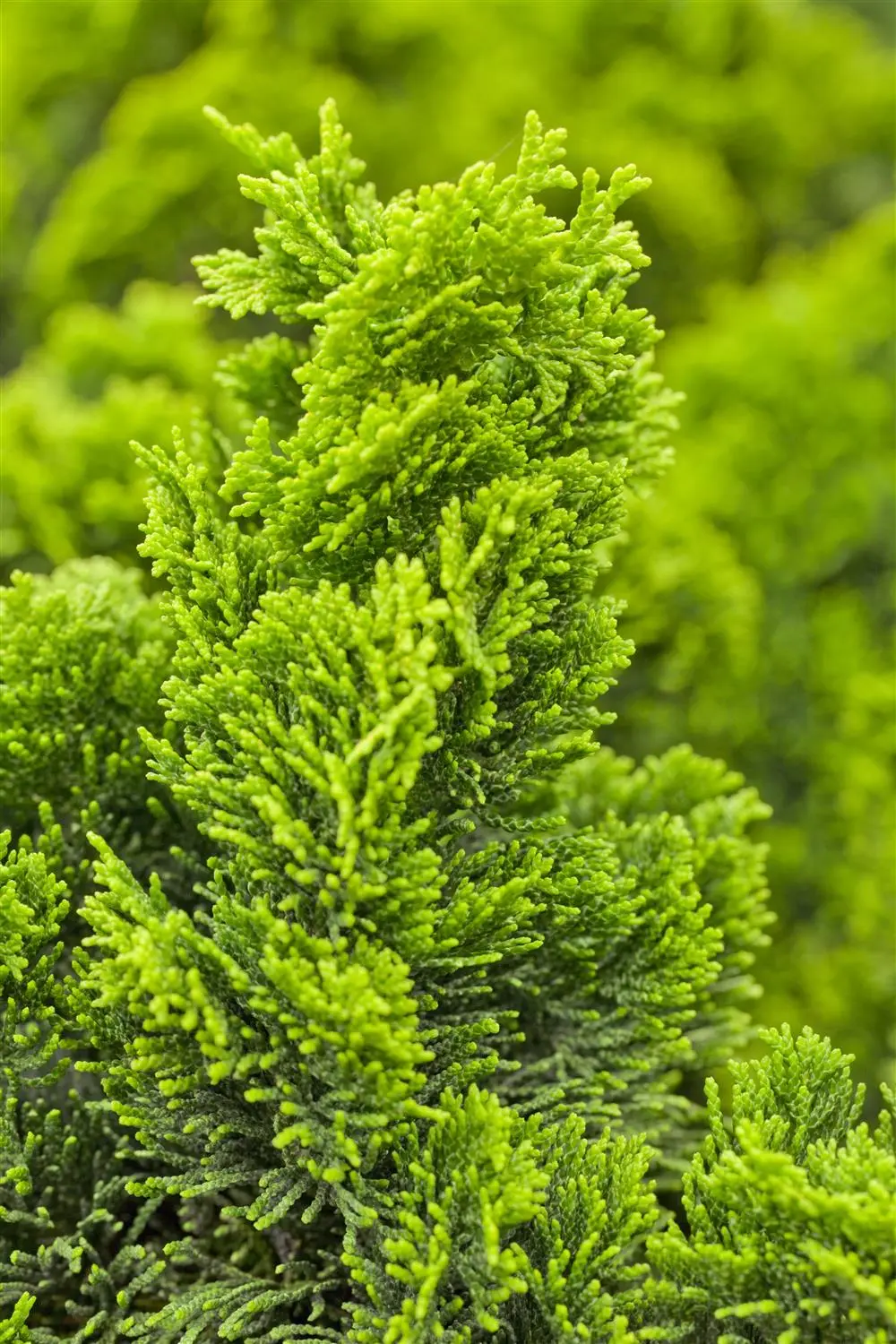 Hinoki cypress 'Nana Aurea' is a rounded shrub. It usually reaches a height of 2 - 2.5 m and is approx. 2 - 2.5 m wide.