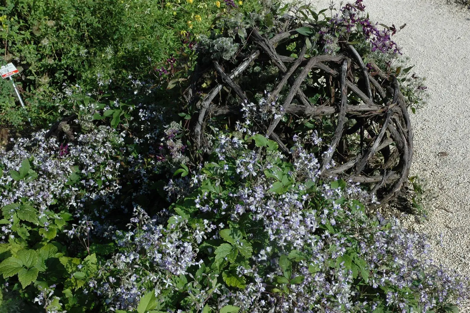 The Durand's clematis (Clematis x jouiniana) is a climbing, carpet-like perennial that forms blue, star-shaped flowers arranged in panicles from August to September. Its pinnate leaves are medium green. In a sunny to semi-shady location with well-drained, humus-rich, loose soil, it usually reaches a height of approx. 2 m and grows to a width of approx. 80 cm. The Durand's clematis is well tolerant of frost.