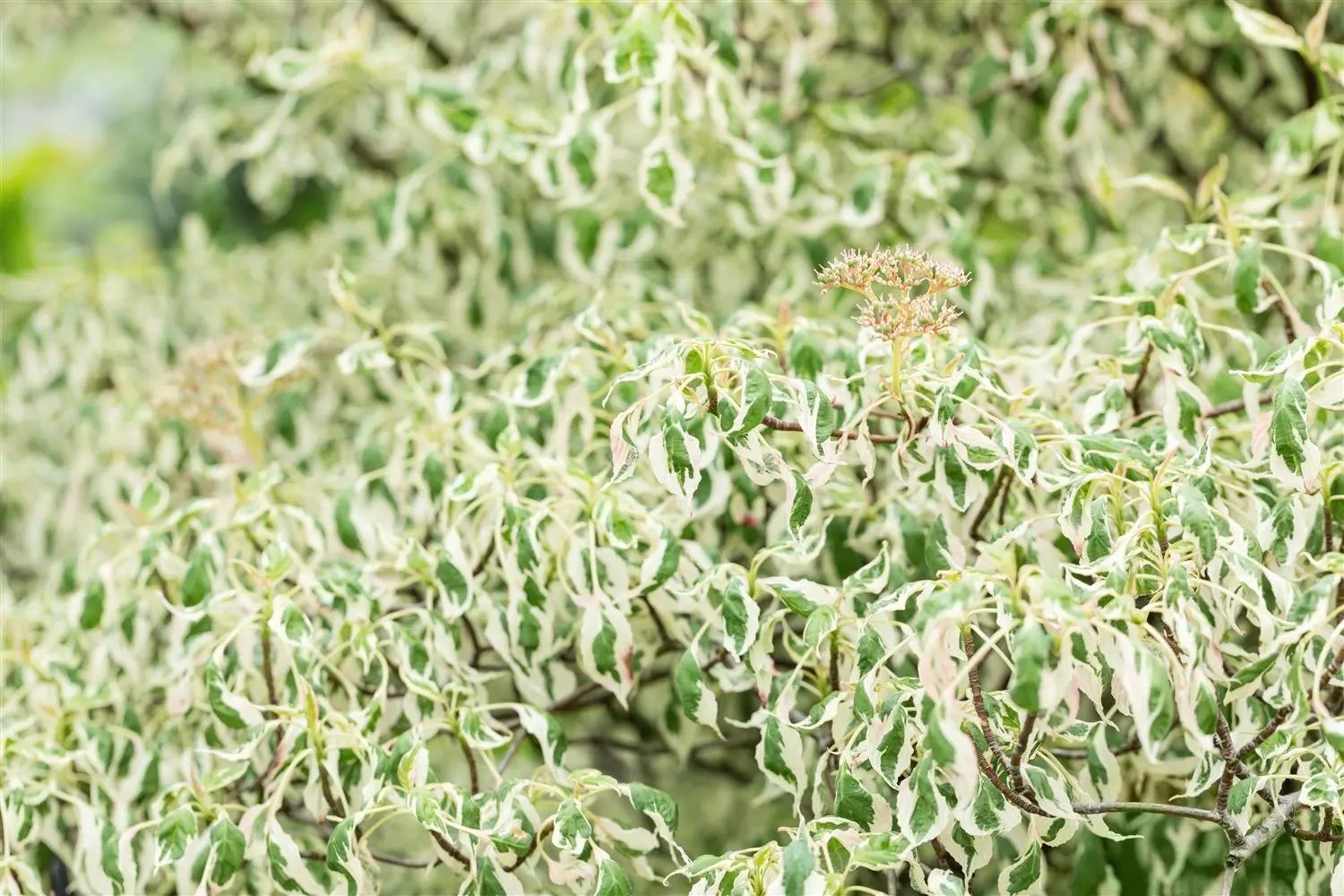 Pagoda dogwood 'Argentea' is a spreading and broadly growing large shrub. It usually reaches a height of 3 - 6 m and is approx. 2 - 5 m wide. It usually grows 20 - 30 cm per year.