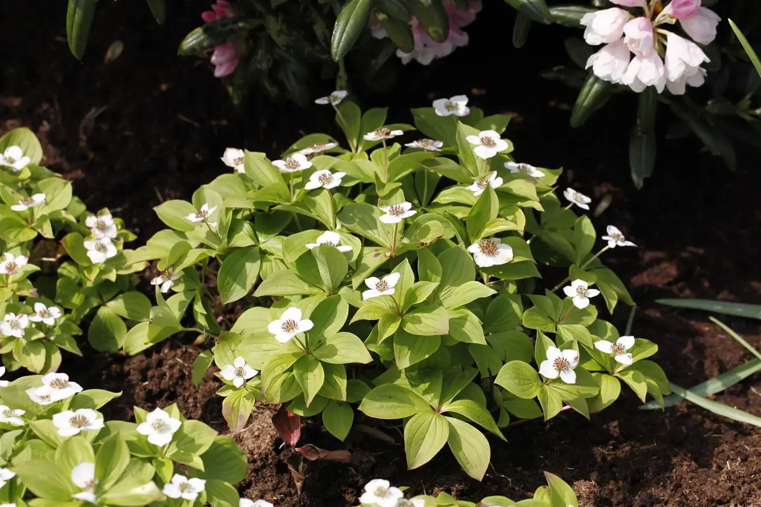 Creeping dogwood is a semi-shrub that grows like a carpet. It usually reaches a height of 10 - 20 cm and is approx. 30 - 40 cm wide. It usually grows 3 - 5 cm per year.
