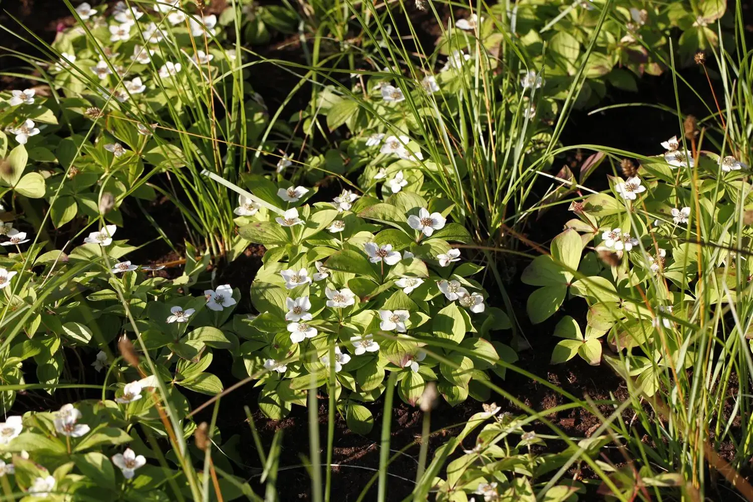 Cornus canadensis is a shallow-rooting plant and, depending on the soil, forms runner-forming roots.