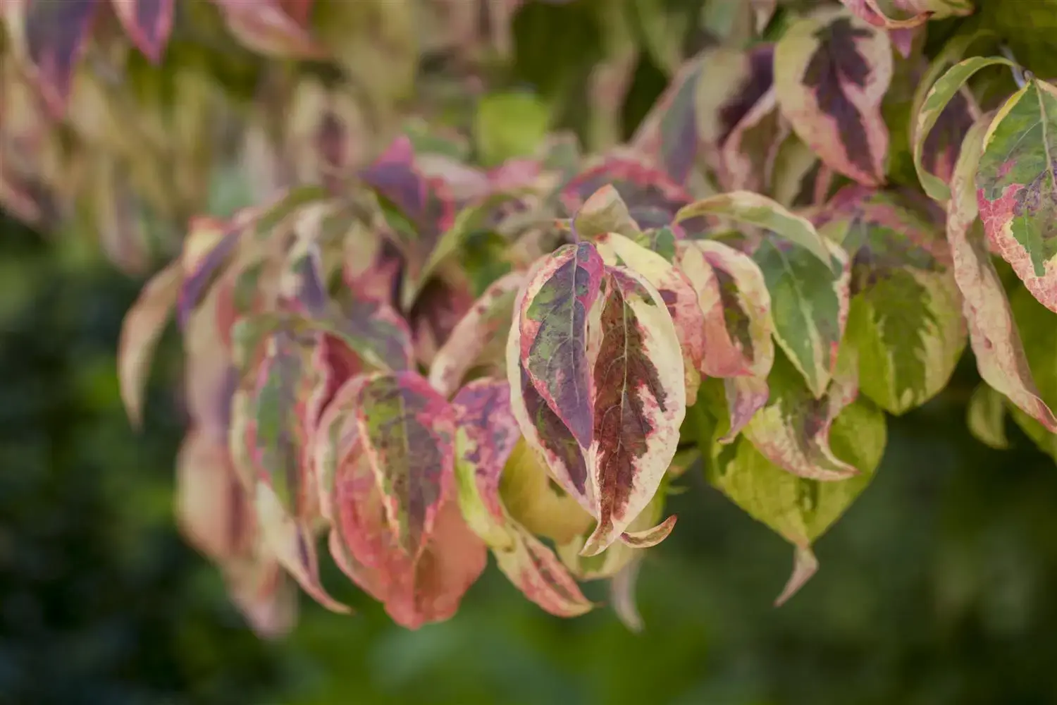 The Flowering dogwood (Cornus florida) is a spreading, broad, large shrub with decorative, scarlet-red, oval fruits. It produces white flowers from May to June. The Flowering dogwood also has lanceolate, dark green leaves. In a sunny to semi-shady location with well-drained, humus-rich, loose, nutrient-rich soil, it usually reaches a height of around 6 metres and grows to a width of around 6 metres.