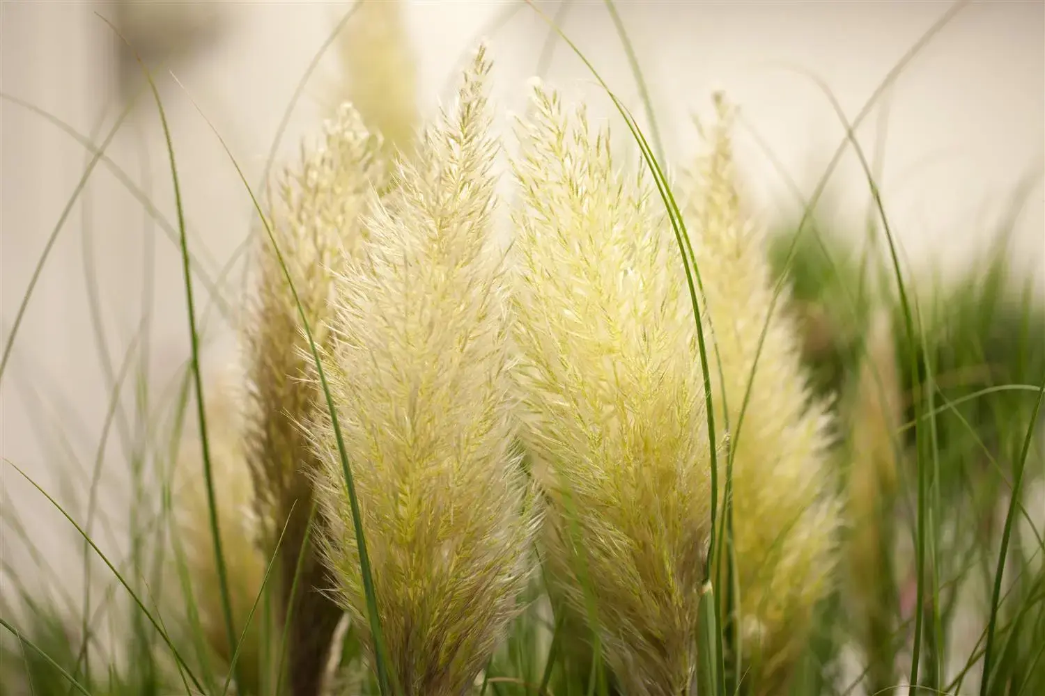 The light yellow flowers of Pampas grass 'Evita'® appear in panicles from August to October.