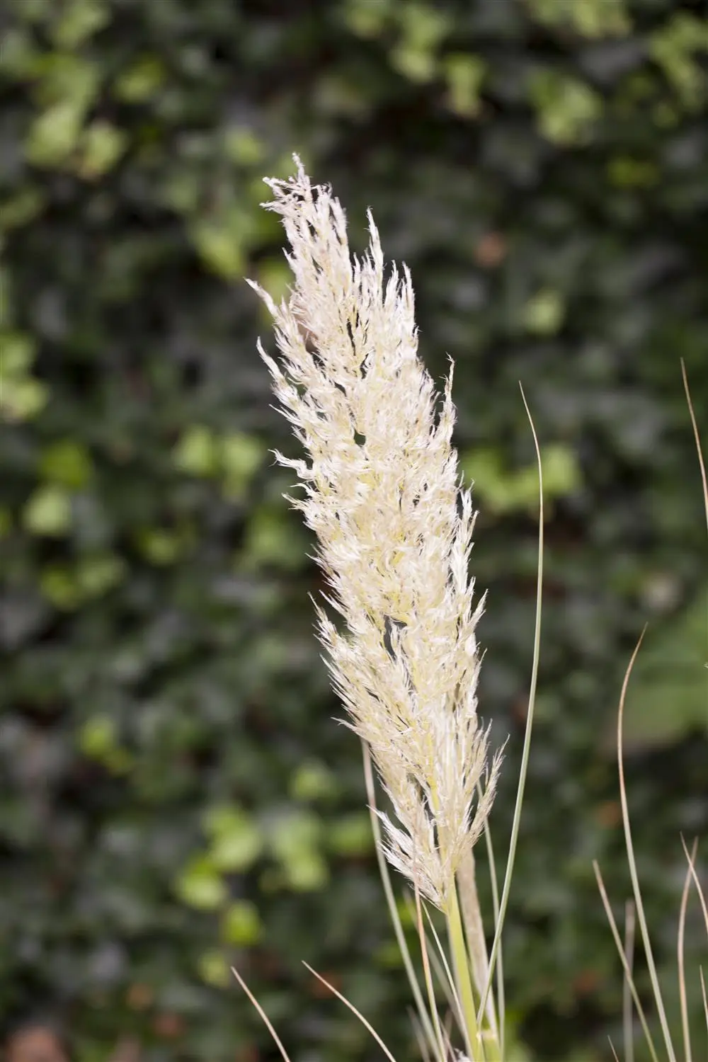 The white flowers of Pampas grass appear in panicles from September to November.
