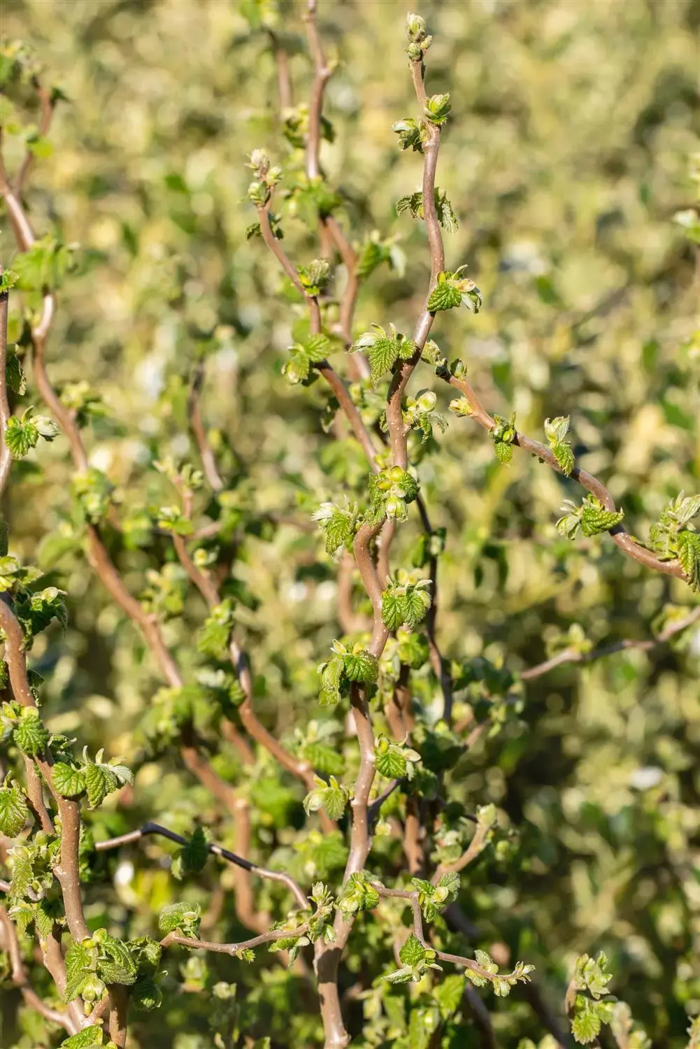 The Hazel 'Scooter' (Corylus avellana) is a broad, multi-stemmed, bizarre large shrub that produces yellow flowers arranged in catkins. They appear from March to April. Brown nuts emerge from these from September. The Hazel 'Scooter' also has roundish, medium green leaves. Its bark is brown and smooth. In a sunny to shady location with well-drained, nutrient-rich soil, it usually reaches a height of approx. 2 metres and grows to a width of approx. 2 metres.