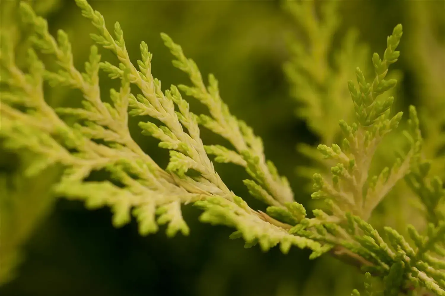 The Leyland Cypress 'Gold Rider' (Cupressocyparis leylandii) is a tree or small tree that grows upright and slender and usually reaches a height of around 12 metres and a width of around 7 metres. Its scale-like leaves are golden yellow in colour. This shrub is well tolerant of frost. It prefers well-drained, nutrient-rich, loamy soil in a sunny to semi-shady, wind-protected location.