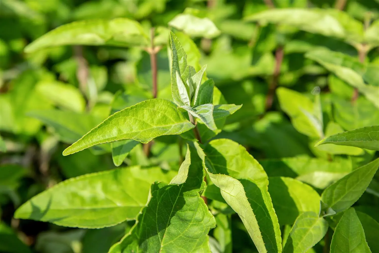 The deciduous leaves of the Deutzia 'Plena' are dark green, lanceolate. They are about 5 - 10 cm in size.