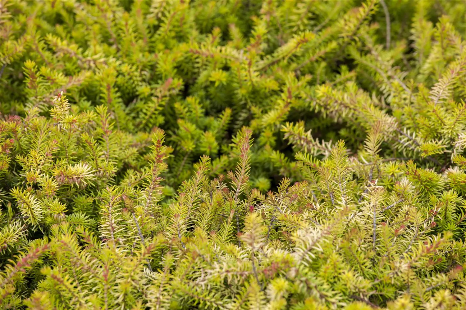 High foliage ornamental value. The evergreen leaves of the Winter heath 'Whisky' are yellow, needle-shaped, glossy and alternate. With its orange-yellow foliage, it sets beautiful accents in winter.