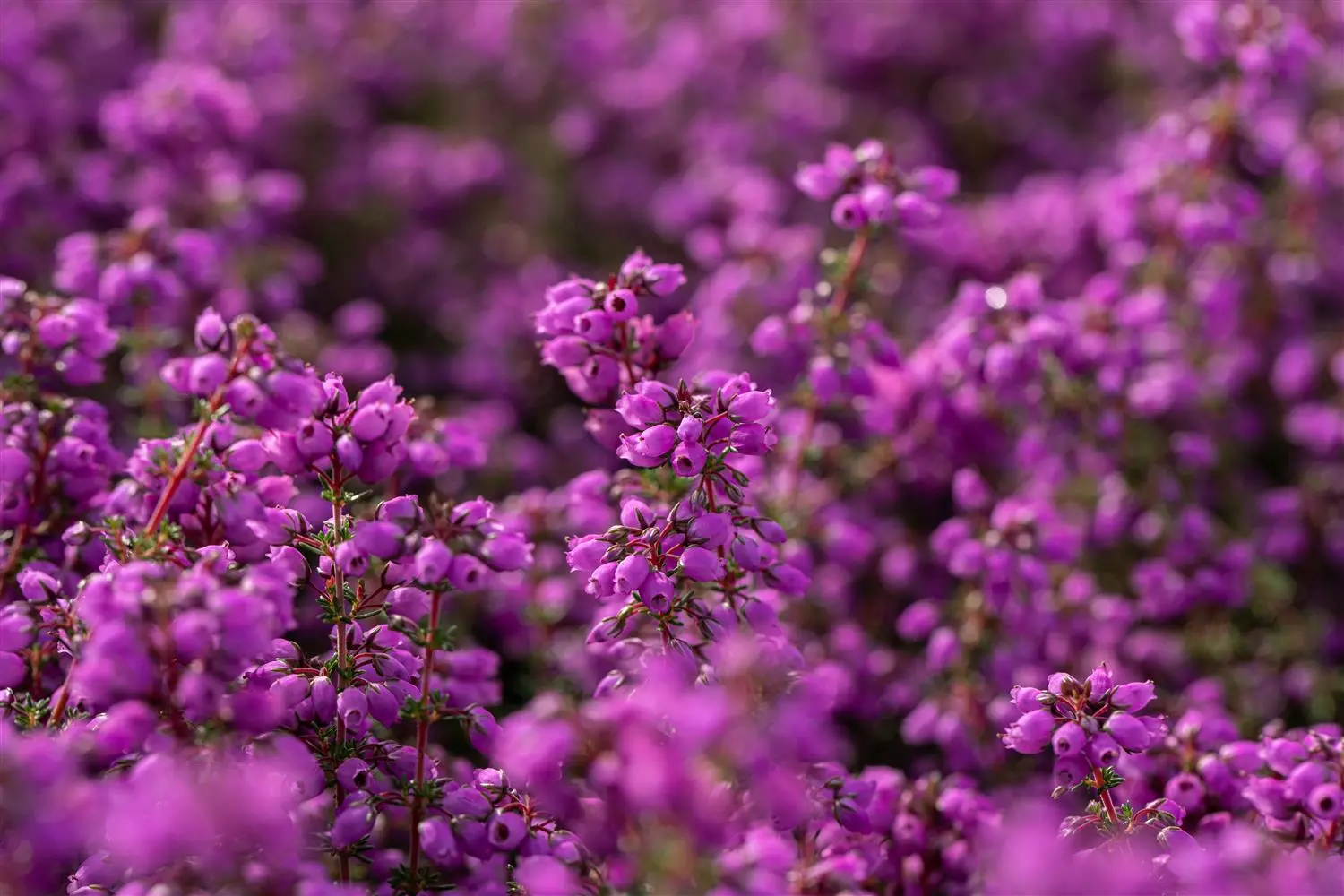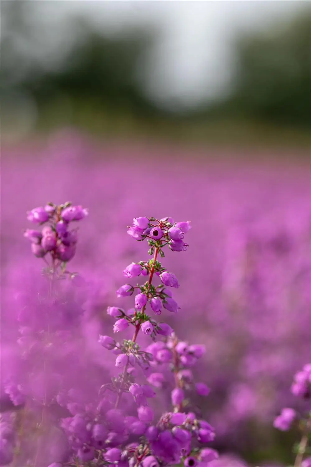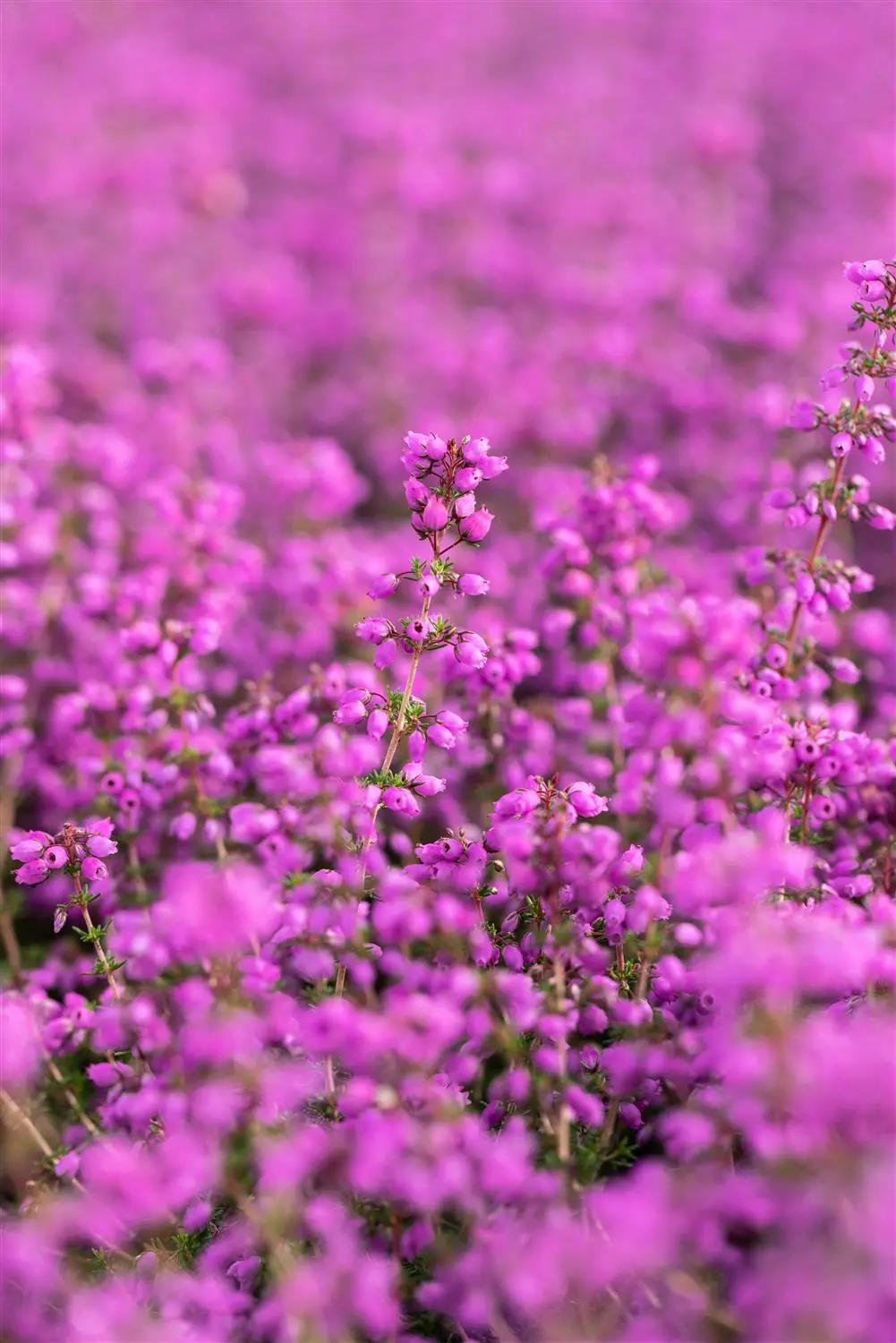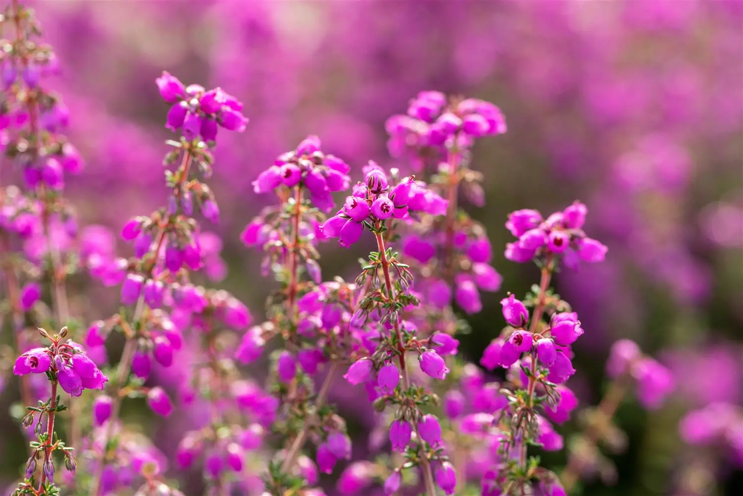 The Bell heather 'Pallas' (Erica cinerea) will brighten up any garden with its countless magenta bell-shaped flowers. From the beginning of July, it will be a delight in flowerbeds, as well as in containers on balconies or terraces. The needle-shaped, grey-green leaves are also a beautiful sight.