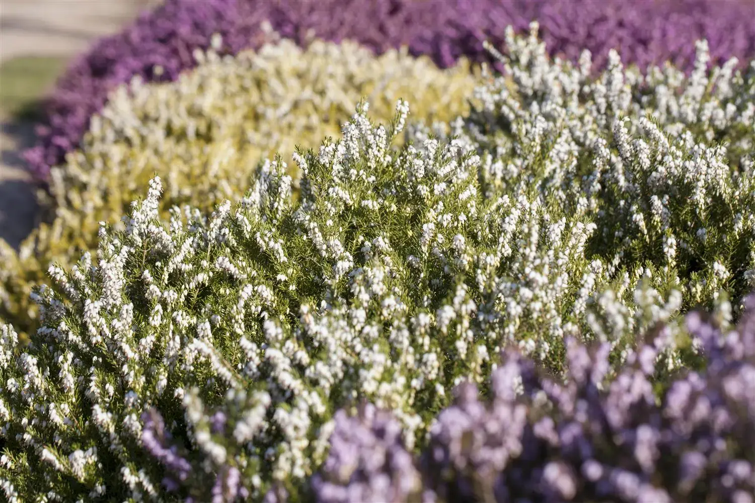 The Darley Dale heath 'White Perfection' (Erica darleyensis) will brighten up any garden with its countless white tubular flowers. From November onwards, it will be a delight in flowerbeds and in containers on balconies or terraces. The needle-shaped, medium green leaves are also a beautiful sight. The yellow new shoots are particularly eye-catching.