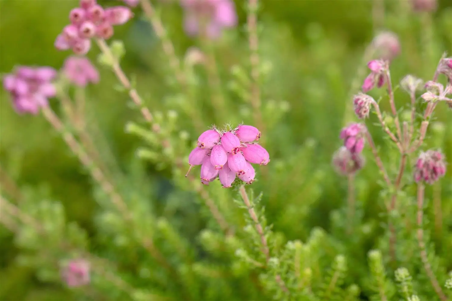 The magenta-coloured, bell-shaped flowers of the Cross-leaved heath 'Con Underwood' appear in umbels from mid-July to early October. They are pleasantly fragrant.