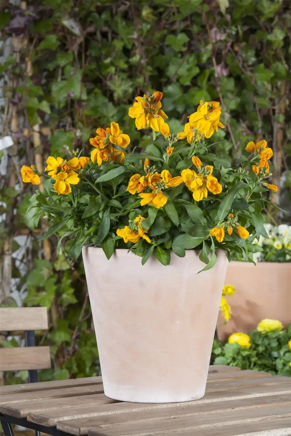 Erysimum cheiri forms yellow, orange-coloured, red flowers from April. These exude a strong fragrance.