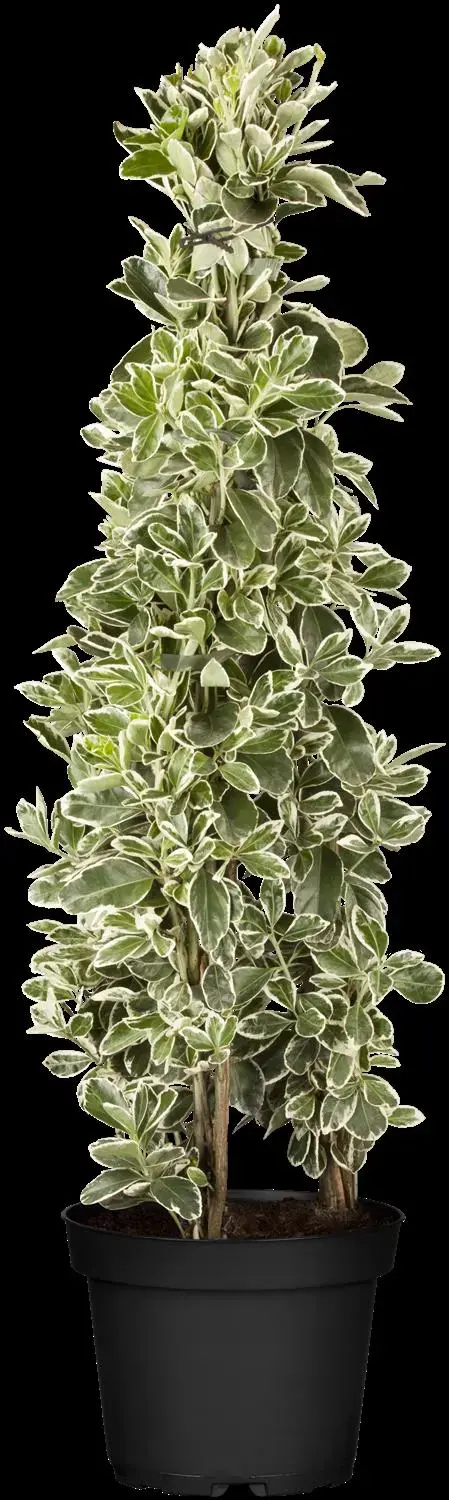 The evergreen leaves of the Japanese spindle 'Kathy'(s) are dark green with a white margin.