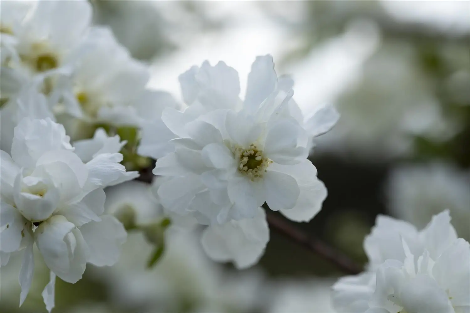 The white flowers of Pearl bush 'The Bride' appear in clusters from May to June. They grow to about 3 - 4 cm and are slightly fragrant.
