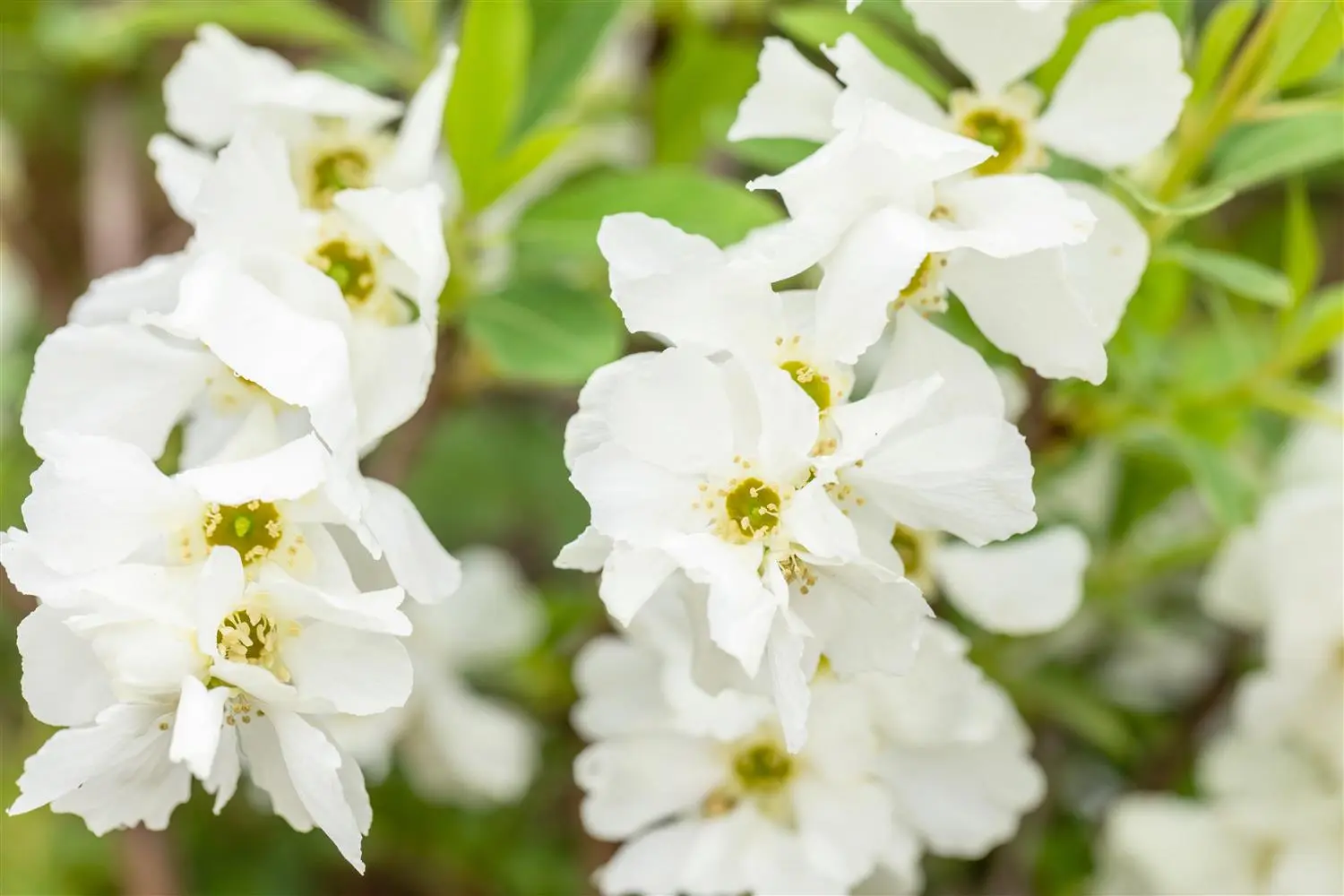 The Pearl bush 'Niagara'® (Exochorda racemosa) is a compact small shrub that produces white, cup-shaped flowers. They appear from April to May. The Pearl bush 'Niagara'® also has lanceolate, light green leaves. In a sunny to semi-shady location with humus-rich, lime-free, nutrient-rich soil, it usually reaches a height of approx. 1.2 m and is approx. 1.5 m wide.