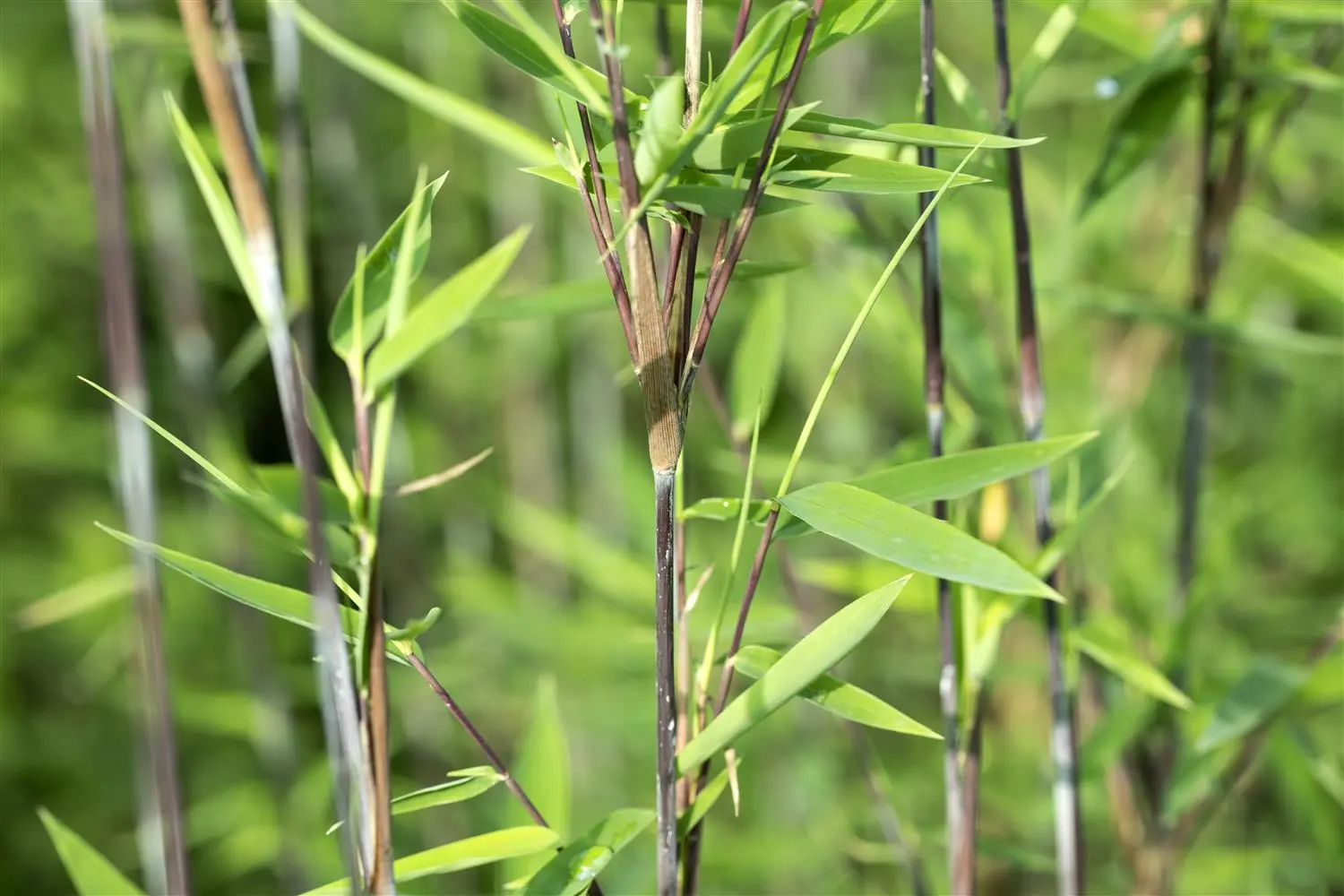 Fountain bamboo 'Black Pearl' is characterised by its blue-violet stems.