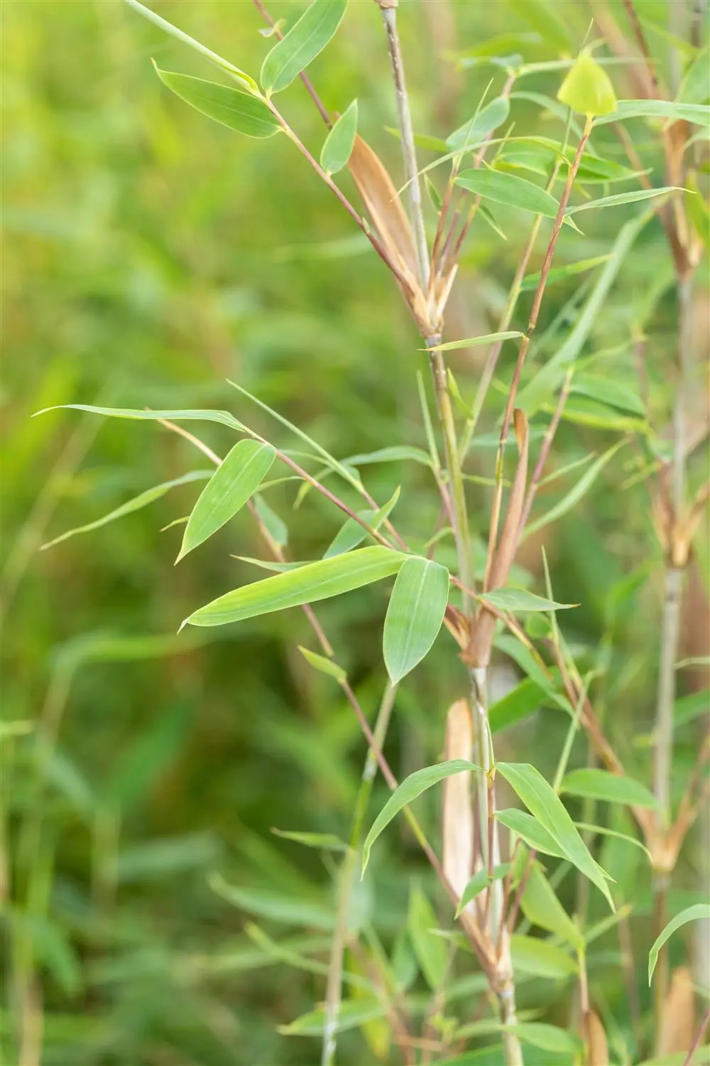With its light green leaf colouring and red stems, Fountain bamboo 'Winter Joy' (Fargesia nitida) is a decorative design element in the garden. What makes it special, apart from its spreading, dense and clump-forming shape, is that it does not need a rhizome barrier! It prefers semi-shady to shady locations with well-drained, humus-rich, loose and nutrient-rich soil. In favourable conditions, this hardy bamboo reaches a height of approx. 4 m and grows up to 2 m wide.