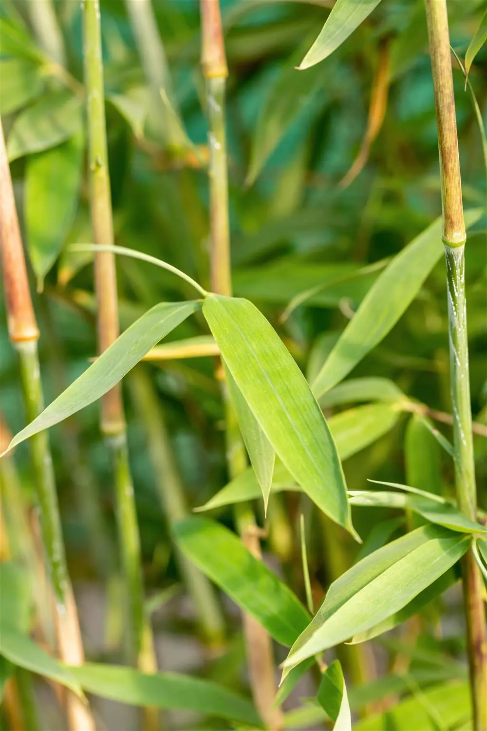 With its light green leaf colouring and red stems, Fountain bamboo 'Winter Joy' (Fargesia nitida) is a decorative design element in the garden. What makes it special, apart from its spreading, dense and clump-forming shape, is that it does not need a rhizome barrier! It prefers semi-shady to shady locations with well-drained, humus-rich, loose and nutrient-rich soil. In favourable conditions, this hardy bamboo reaches a height of approx. 4 m and grows up to 2 m wide.