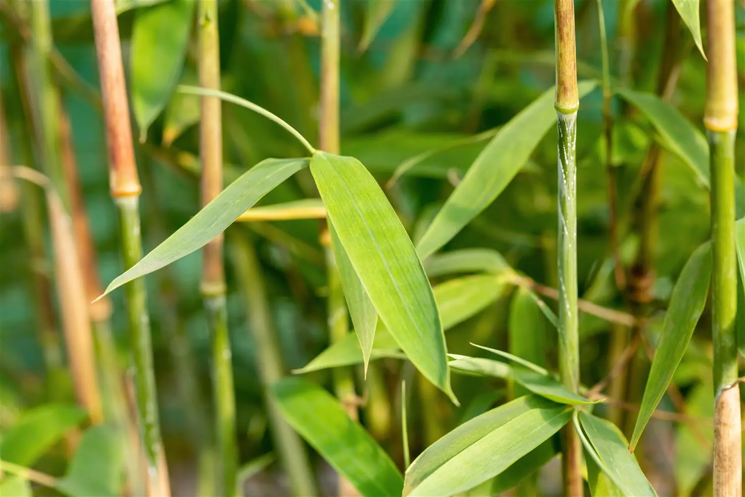 With its light green leaf colouring and red stems, Fountain bamboo 'Winter Joy' (Fargesia nitida) is a decorative design element in the garden. What makes it special, apart from its spreading, dense and clump-forming shape, is that it does not need a rhizome barrier! It prefers semi-shady to shady locations with well-drained, humus-rich, loose and nutrient-rich soil. In favourable conditions, this hardy bamboo reaches a height of approx. 4 m and grows up to 2 m wide.