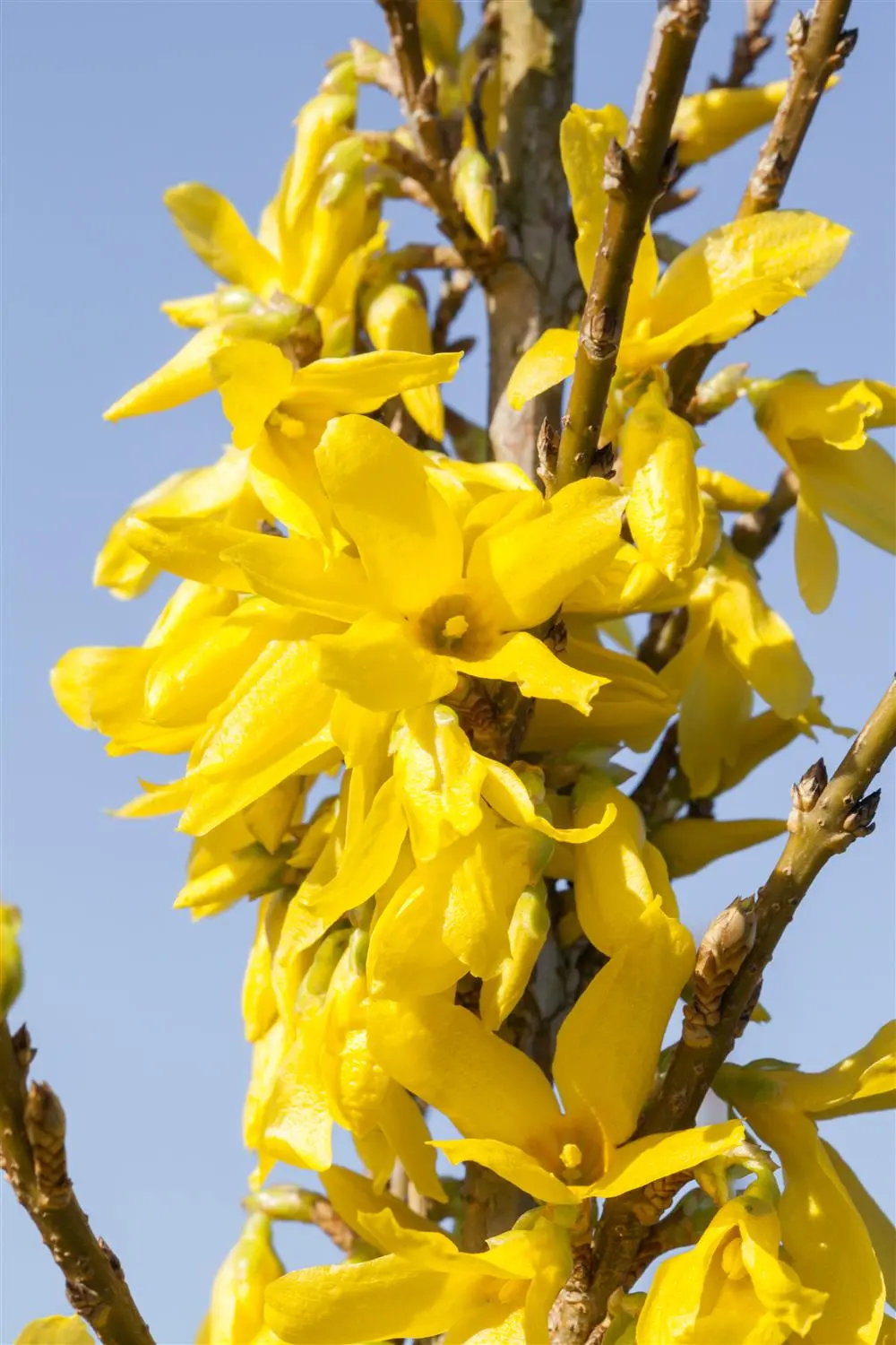 Border Forsythia 'Week End'® is an overhanging shrub. It usually reaches a height of 1.5 - 2 m and is approx. 1 - 1.5 m wide. It usually grows 20 - 40 cm per year.