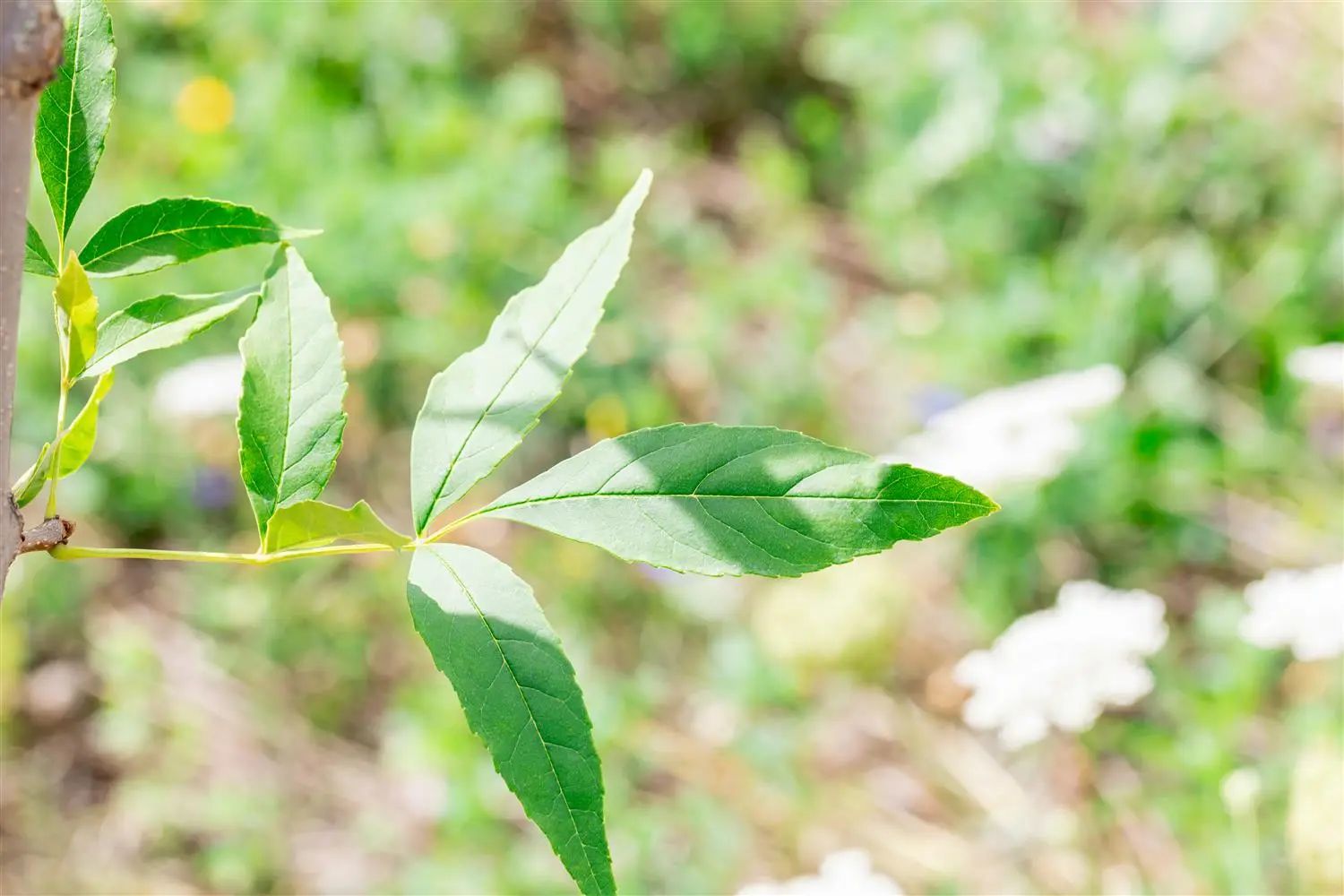 The American ash 'Summit' (Fraxinus pennsylvanica) is a conical, broad tree that produces greenish-yellow flowers. They appear from April to May. The American ash 'Summit' also has matt, pinnate, medium green leaves. Its bark is brown and deeply fissured. In a sunny location with well-drained, nutrient-rich, weakly acidic soil, it usually reaches a height of around 16 metres and grows to a width of around 8 metres.