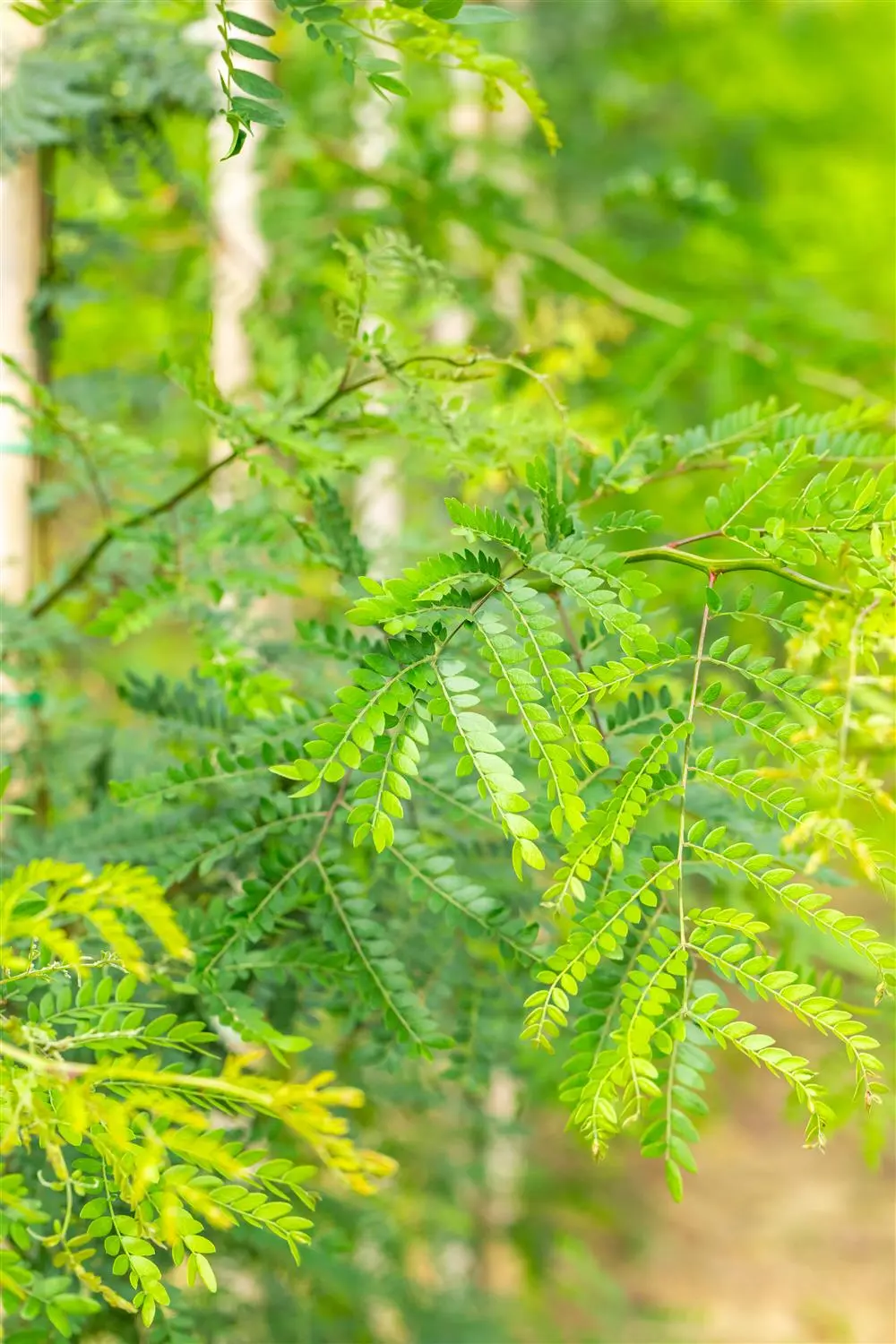 Honey locust 'Inermis' is an umbrella-shaped, picturesque large tree with a light-permeable, loose crown. It usually reaches a height of 10 - 25 m and is approx. 8 - 20 m wide. As a rule, it grows 20 - 25 cm per year.