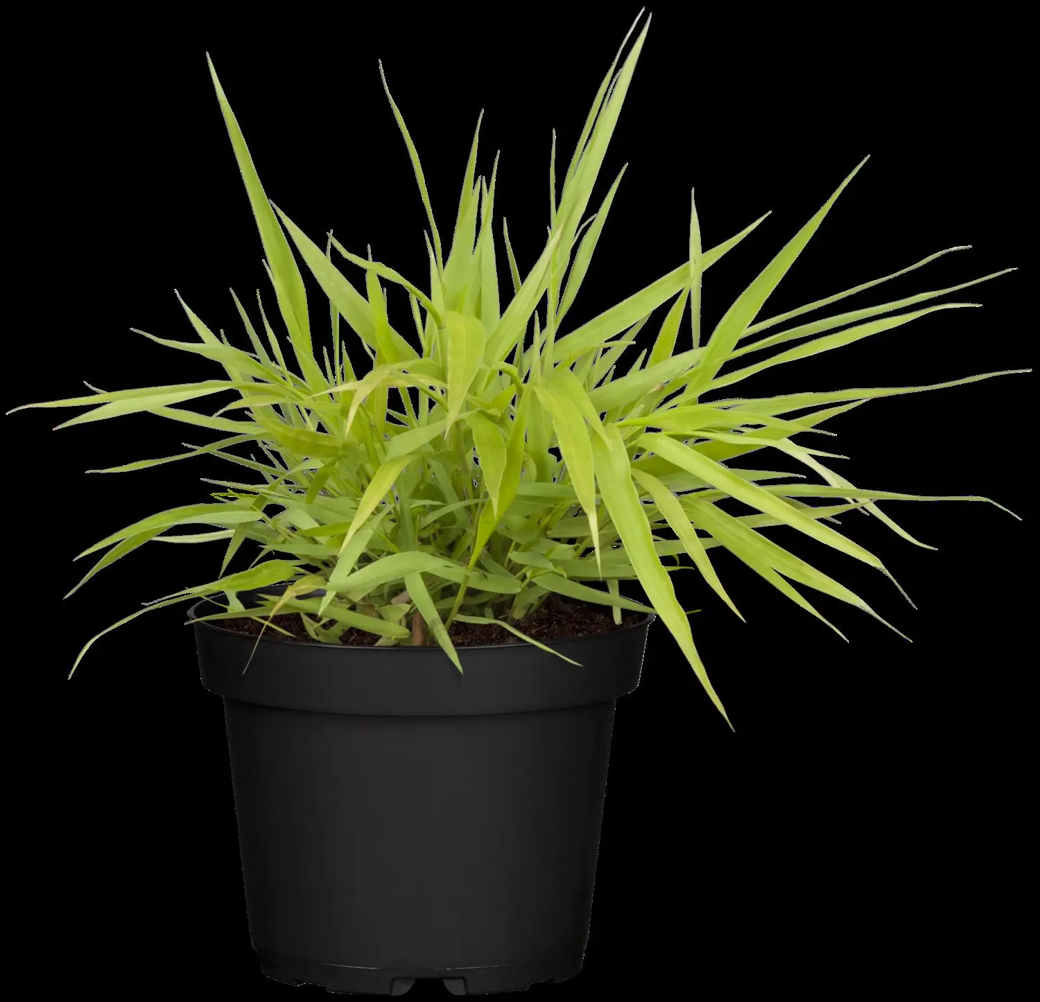 With its dark green, yellow leaf colouring, the Japanese forest grass 'All Gold' (Hakonechloa macra) is a decorative design element in the garden, which also stands out with its bushy and broad growth. The green flower fronds adorn this grass from summer onwards. It feels most at home in a semi-shady to shady location with well-drained, humus-rich soil. In favourable conditions, this hardy grass reaches a height of approx. 40 cm and grows up to 40 cm wide.
