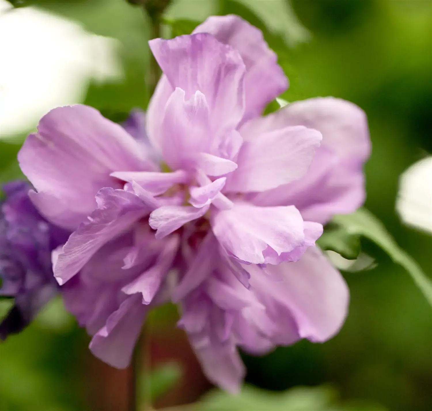 The Rose of Sharon 'Ardens' (Hibiscus syriacus) is a broad, compact shrub that produces purple-coloured, cup-shaped flowers. They appear from July to September. The Rose of Sharon 'Ardens' also has egg-shaped, medium green leaves. In a sunny to semi-shady, wind-protected location with well-drained, nutrient-rich soil, it usually reaches a height of approx. 1.8 metres and grows to a width of approx. 1.2 metres.