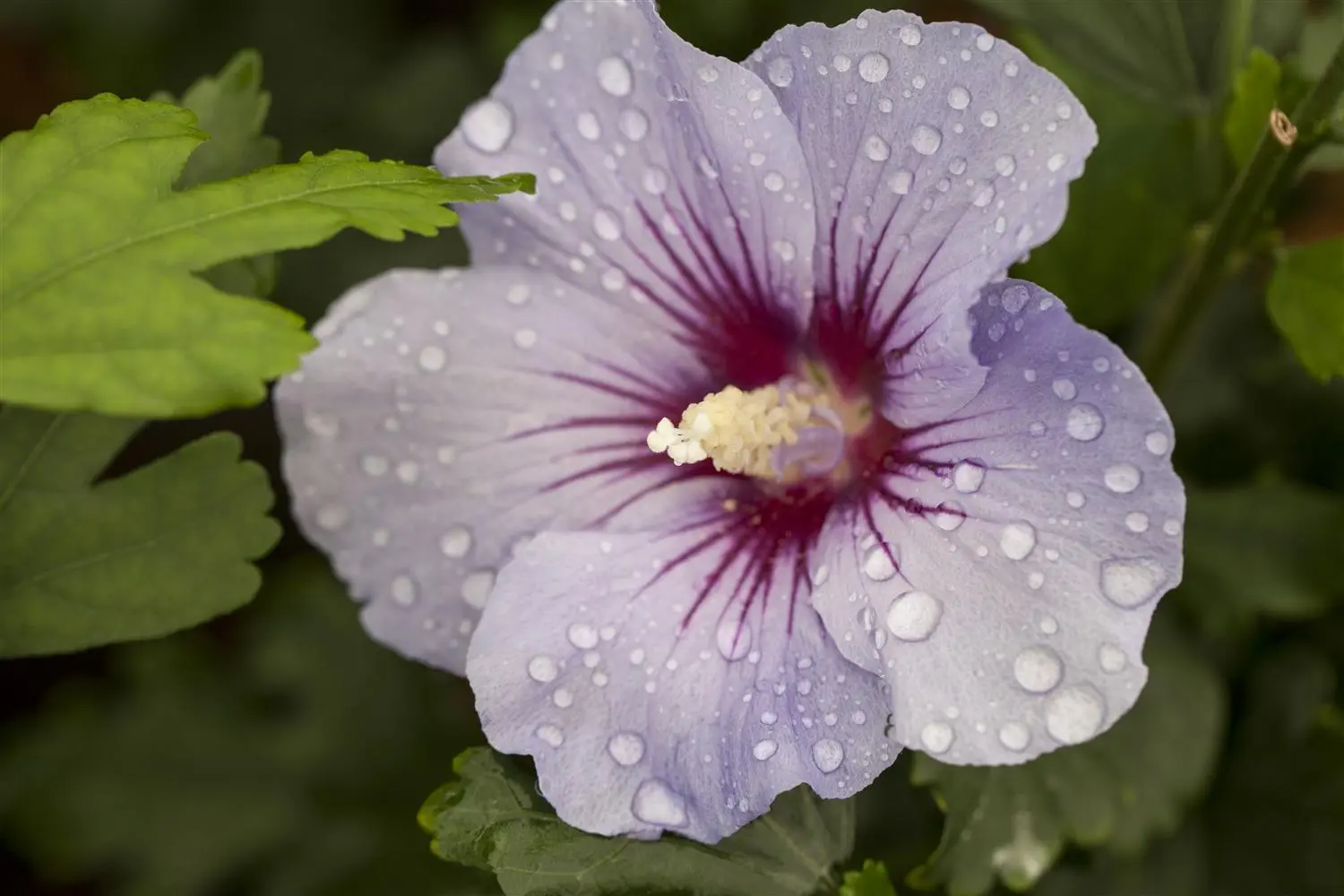 The Rose of Sharon 'Marina' (Hibiscus syriacus) is an upright, shrub-like shrub that produces blue, cup-shaped flowers. They appear from July to September. The Rose of Sharon 'Marina' also has egg-shaped, medium green leaves. In a sunny to semi-shady, wind-protected location with well-drained, nutrient-rich soil, it usually reaches a height of approx. 2 metres and is approx. 1.2 metres wide.