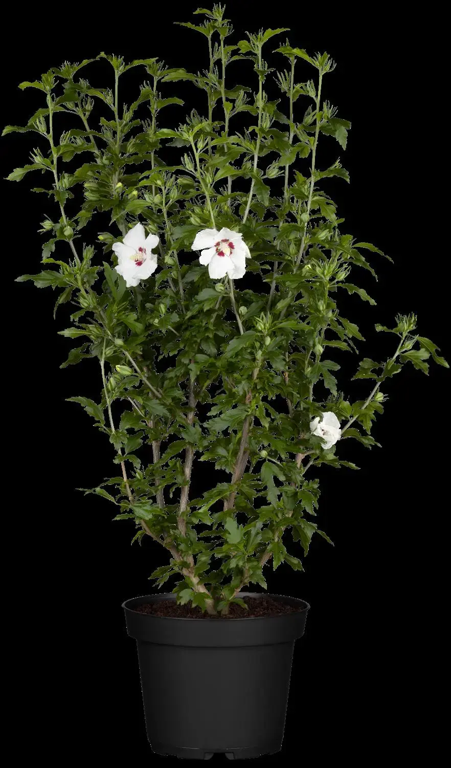 The Rose of Sharon 'Red Heart' (Hibiscus syriacus) is an upright shrub that produces white-red, cup-shaped flowers. They appear from July to September. The Rose of Sharon 'Red Heart' also has egg-shaped, medium green leaves. In a sunny to semi-shady, wind-protected location with well-drained, nutrient-rich soil, it usually reaches a height of approx. 2 metres and is approx. 1.5 metres wide.